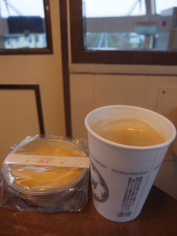 車内販売のコーヒーとチーズケーキを買って,優雅に過ごします.
