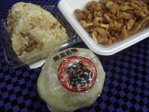 買ったのは鶏皮,鶏飯のおにぎり,そしていきなり団子です.いきなり団子は熊本の郷土料理みたいです.