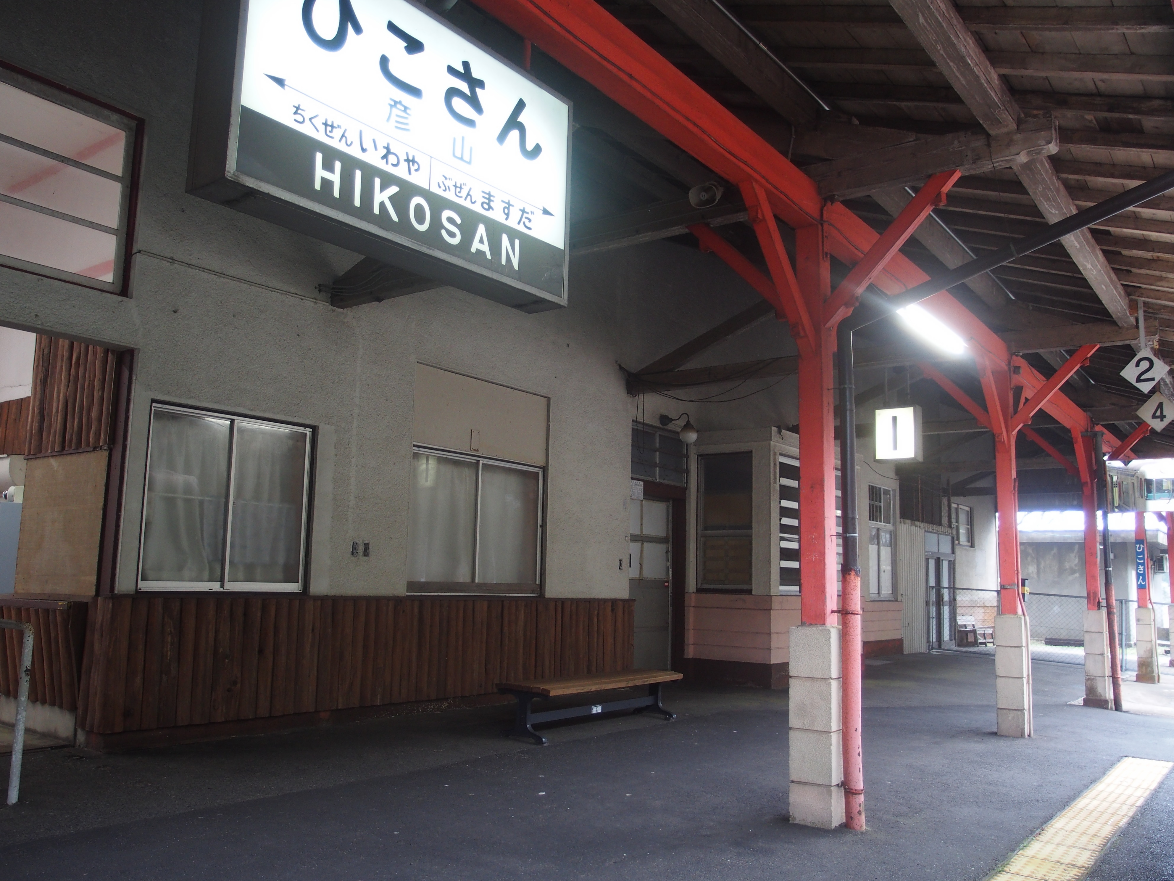 彦山駅.二又トンネル爆発事故という終戦直後の火薬処理に失敗して山が吹き飛ぶほどの大爆発を起こし,戦後最大級の犠牲者を出した事故があった場所の最寄駅です.この駅にも焼け跡やら飛んできた石の跡やらがあったり,近くに「爆発踏切」という名前の踏切があったりするそうですが,見つけることはできませんでした.