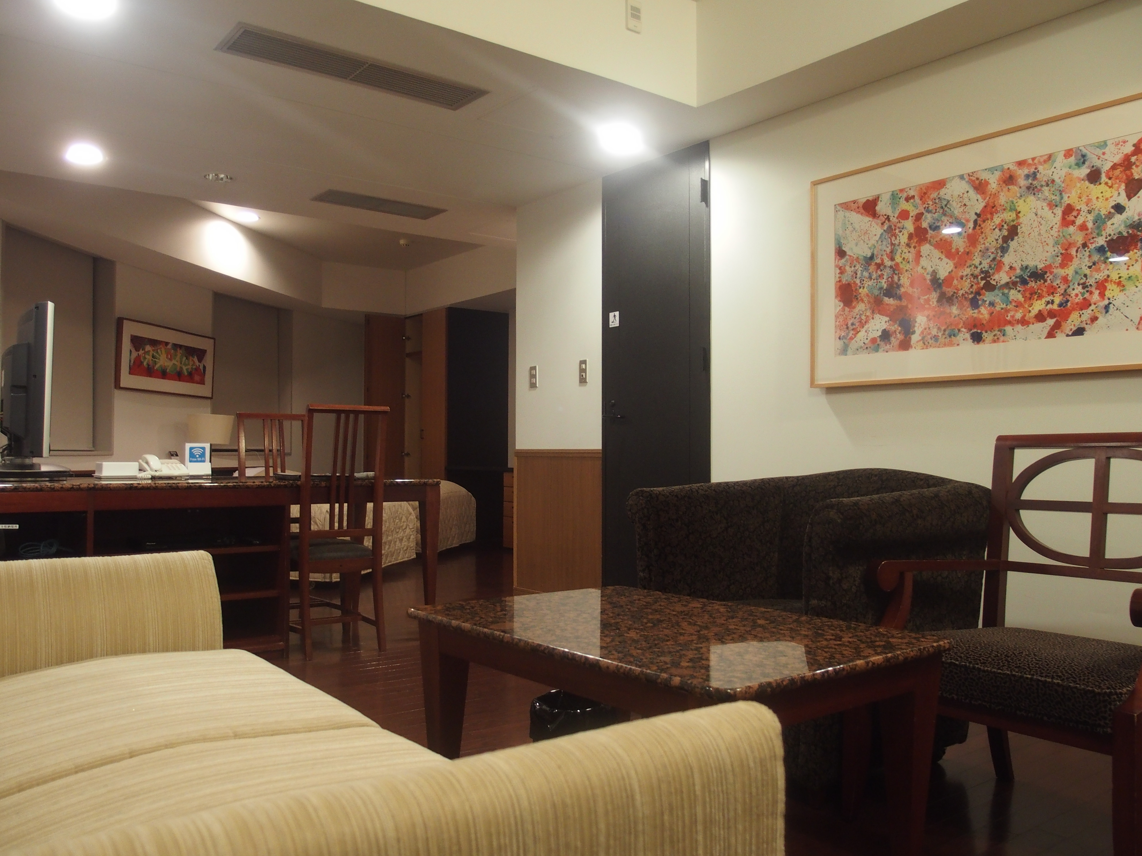 博物館を見た後は宿へ行きました.今回泊まったのはザ・レジデンシャルスイート・福岡というところ.44平米とムダに広く,ベッドが3つあります,それよりもうれしいのは,キッチンがついているところ.レジデンシャルという名前は伊達ではありません.