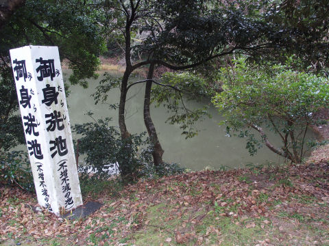 うさぎが体を洗って傷口を癒したという御身洗池.水が増減しない不思議な池だそうです.
