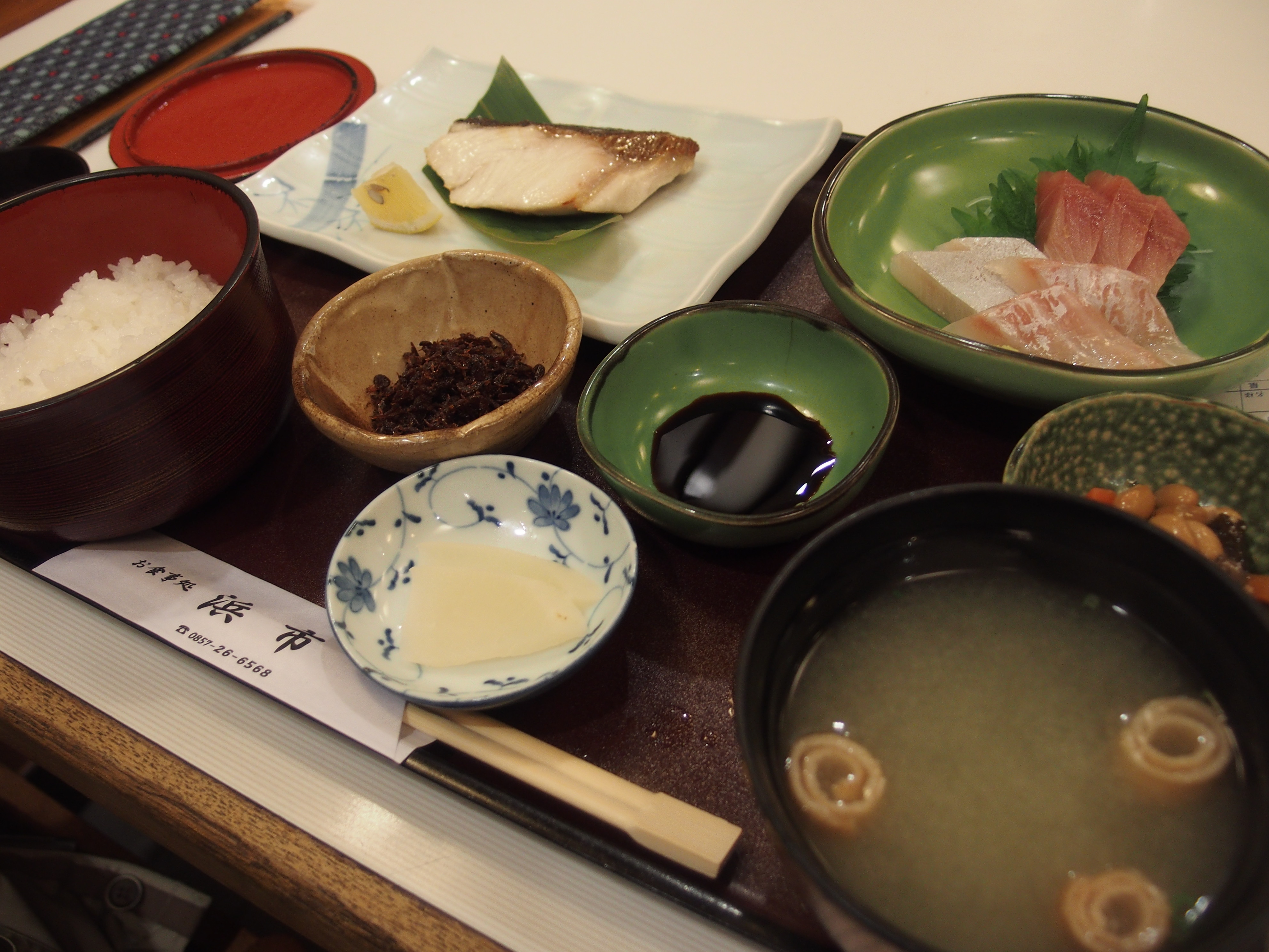 鳥取駅周辺で食べ歩き 2017/1/22(9年前) 山陰, 日記, 鳥取 (2017年1月8・9日) 17時ごろチェックインしてから,おいしいものを食べに出かけました. こちらは浜市という定食屋の,刺身と寒ブリの塩焼きの定食です. その後ホステルに戻りましたが,せっかくなので時間をおいてまた出かけました. 大善の極上海鮮丼です. 翌朝バスに乗って帰りましたが,その前に鳥取駅構内にある砂丘そばという店で砂丘そば+ミニカツ丼を食べました.そばに入っているのはあごちくわという鳥取名物です.