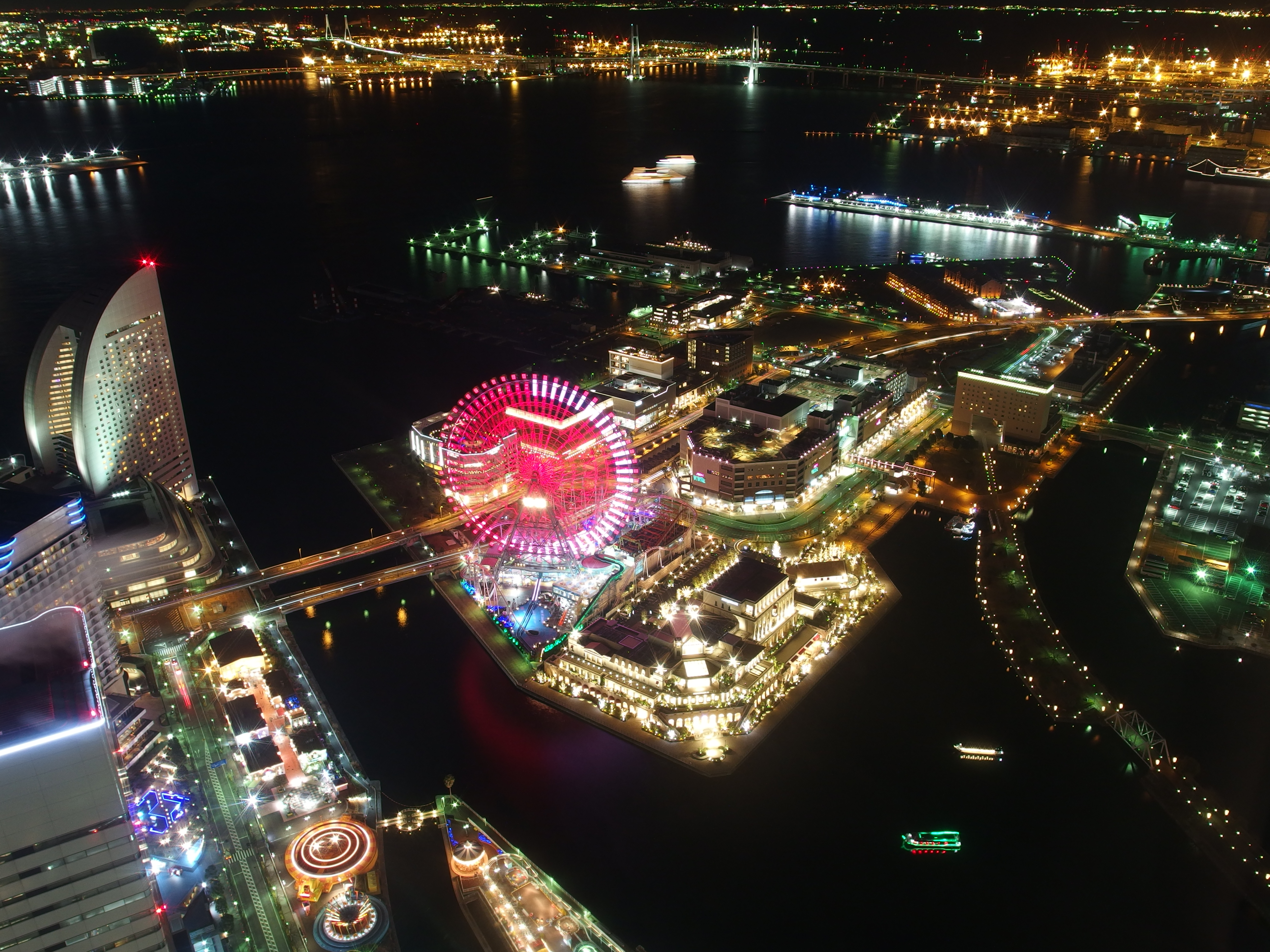 今日の宿は桜木町です.せっかくなのでランドマークタワーに登って夜景を撮りました.