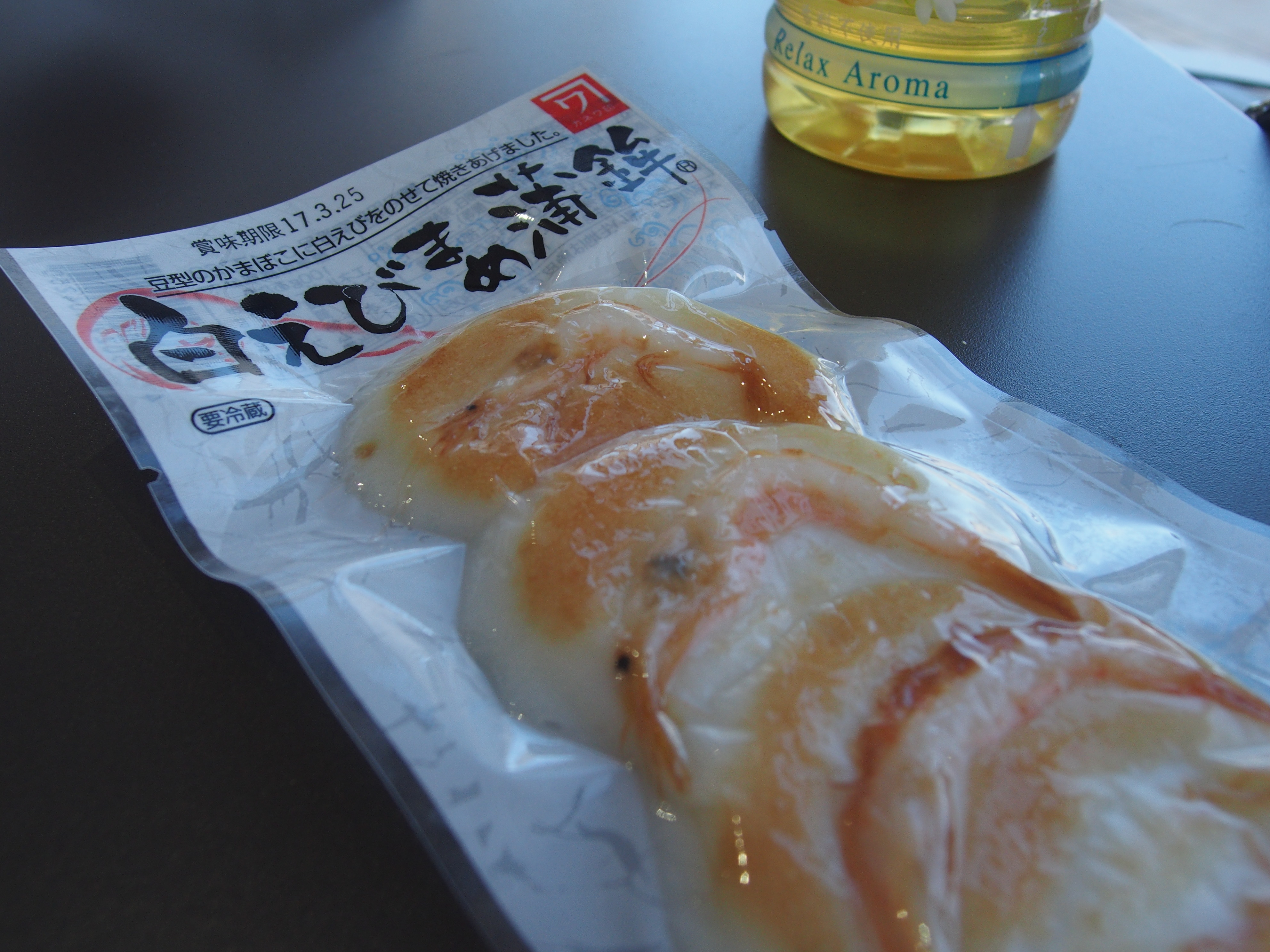 1階の土産屋で「のわまーと」で白えびまめ蒲鉾を食べました.
