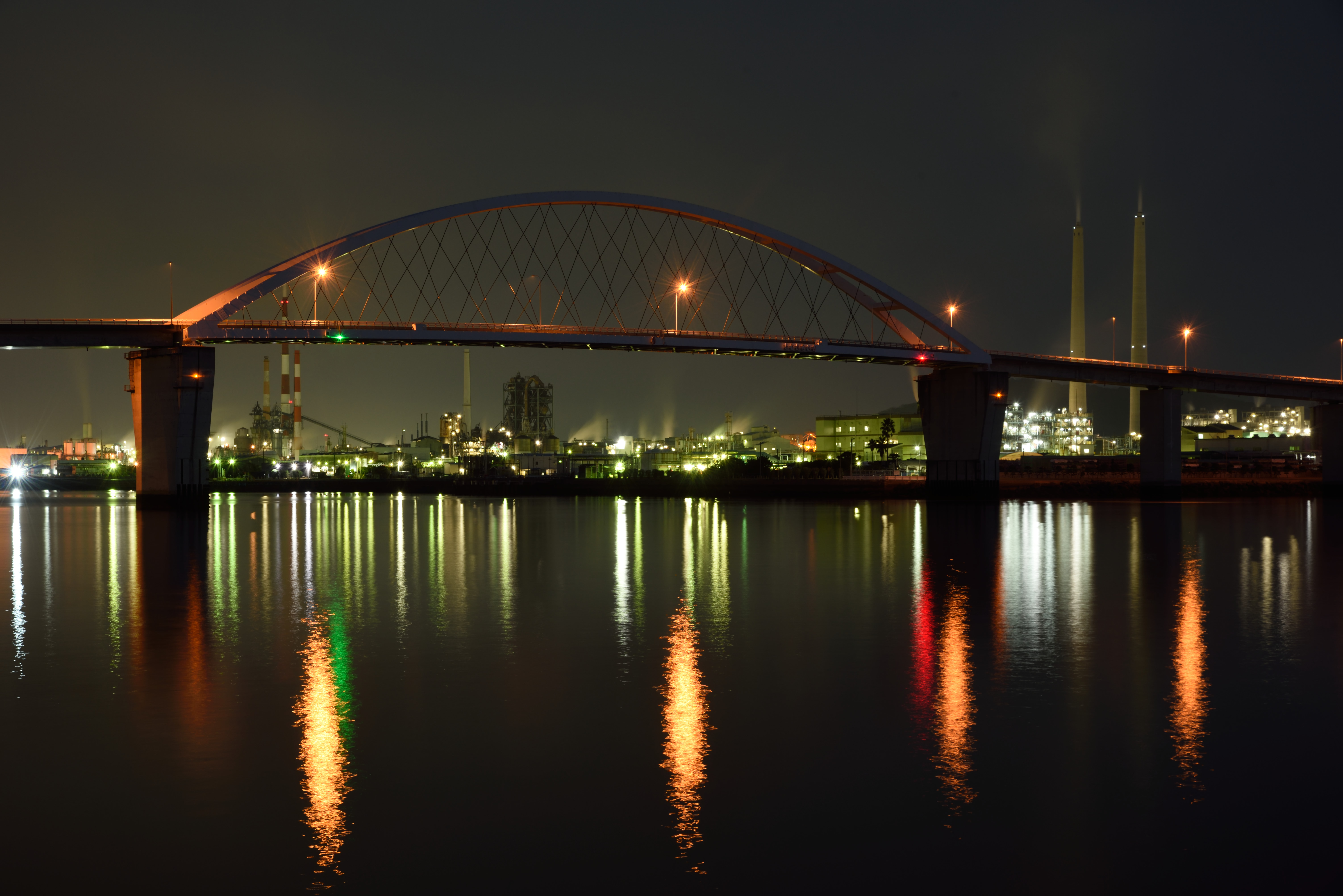 周南工場夜景 2017/3/30(9年前) 写真, 山口, 山陽 (2017年3月18日) 新幹線の車窓で見たときから来たかった周南で,工場夜景を撮ってきました.なお撮影に当たりこちらを参考にしました. 徳山のホテルで自転車を借り,福川駅近くまで行ってから撮りながら戻って来ました. こちらは周南大橋からの夜景.ここからの夜景が一番良かったです. 周南大橋を,福川漁港越しに. 富田川河口,(株)トクヤマの特徴的な2本並んだ煙突. 徳山港町の夜景. 晴海親水公園の夜景. 徳山駅の方です.