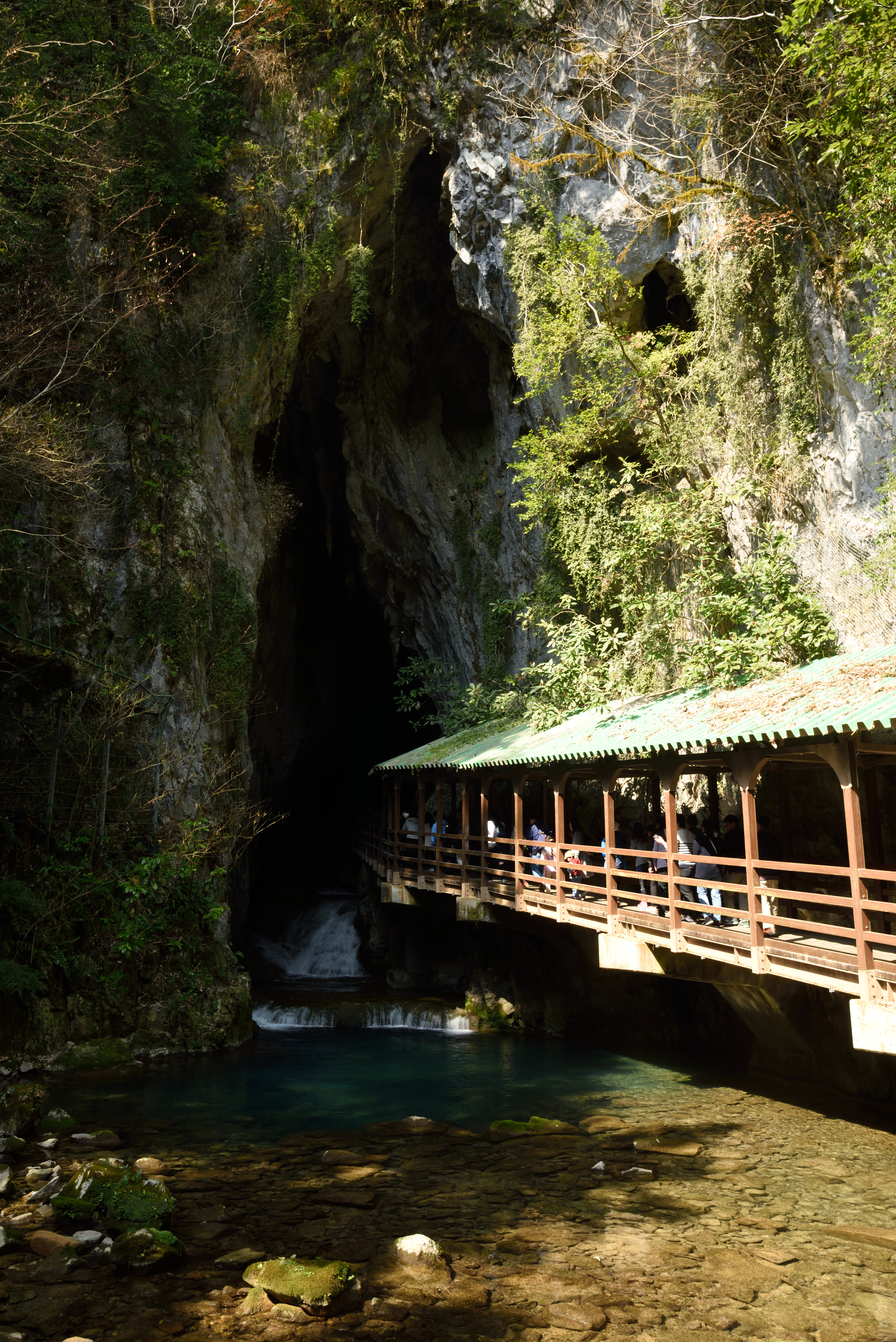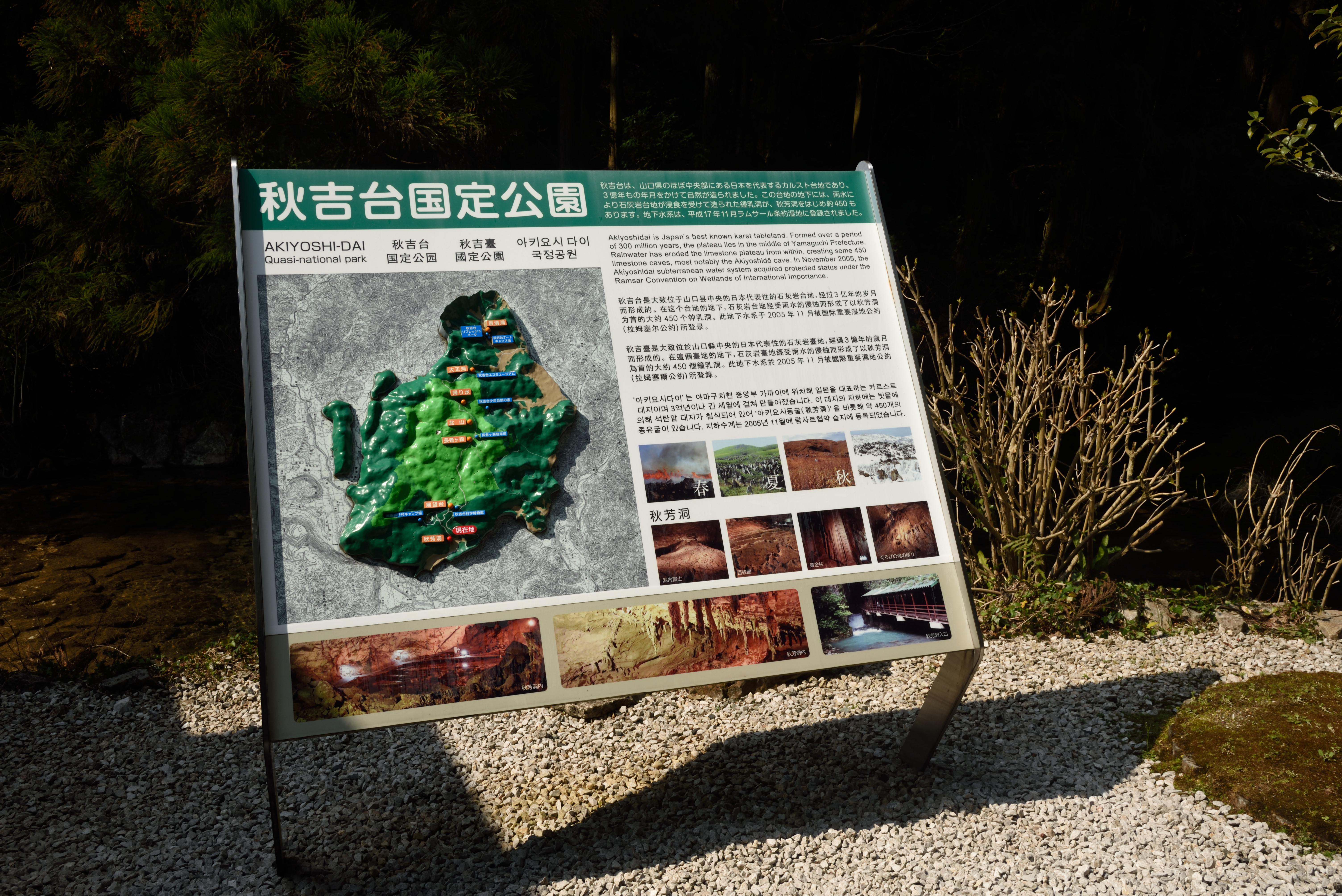 新山口から秋芳洞へ 2017/3/31(9年前) 写真, 山口, 山陽 (2017年3月19日) 徳山駅から新山口へ行き,そこからバスに乗って秋芳洞へ行きました. 跨線橋からSLが見えました.後ほど乗ったバスのアナウンスによると,このSLはこの日から運行開始とのことでした. 50分ほどで秋芳洞へ着きました. 秋吉台の案内板. バス停から400mほど歩くと入口に着きます.