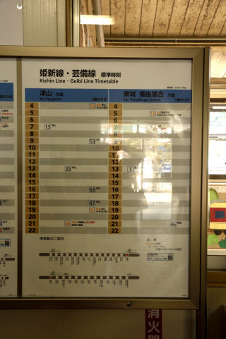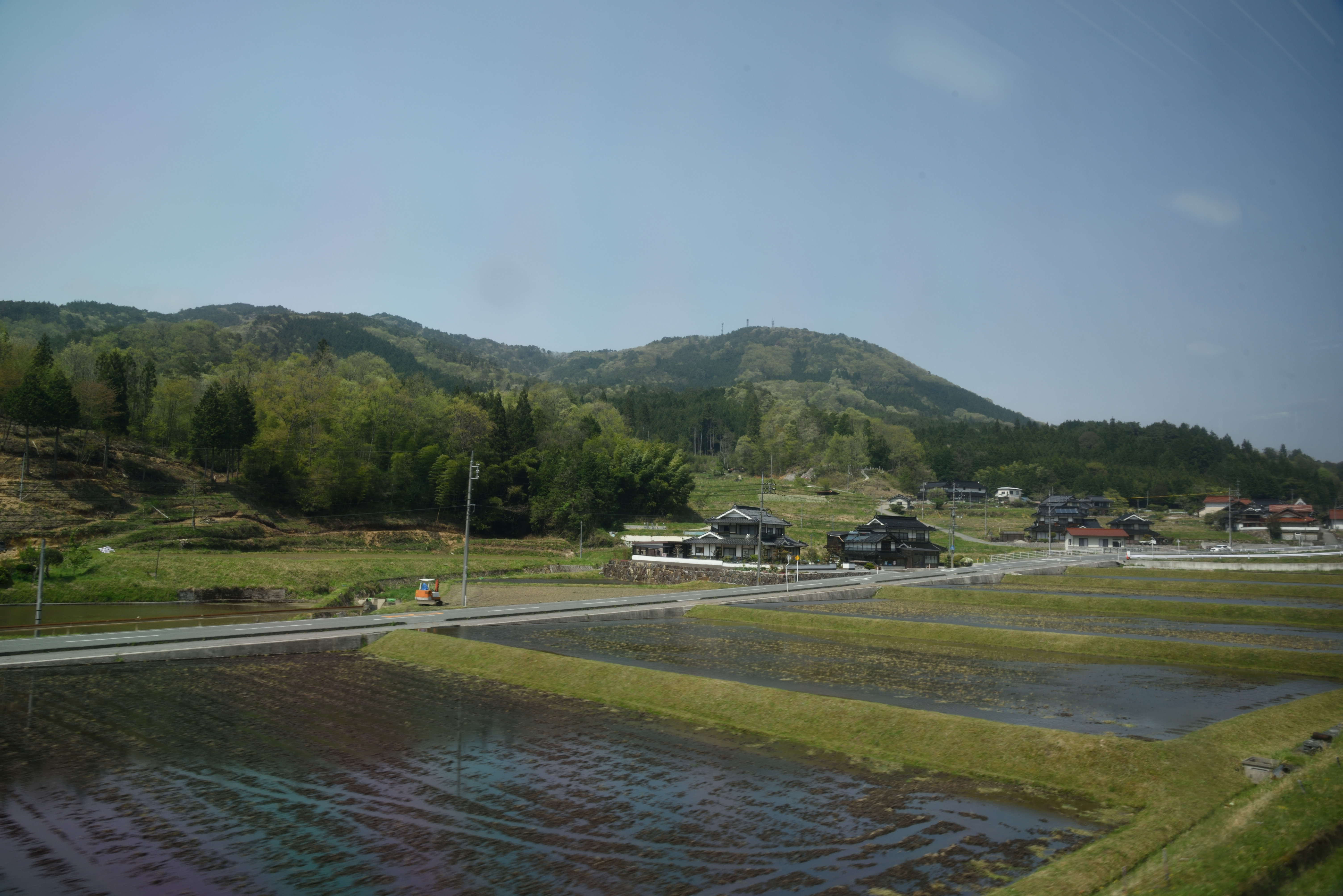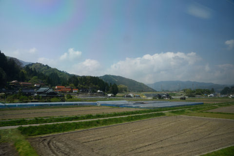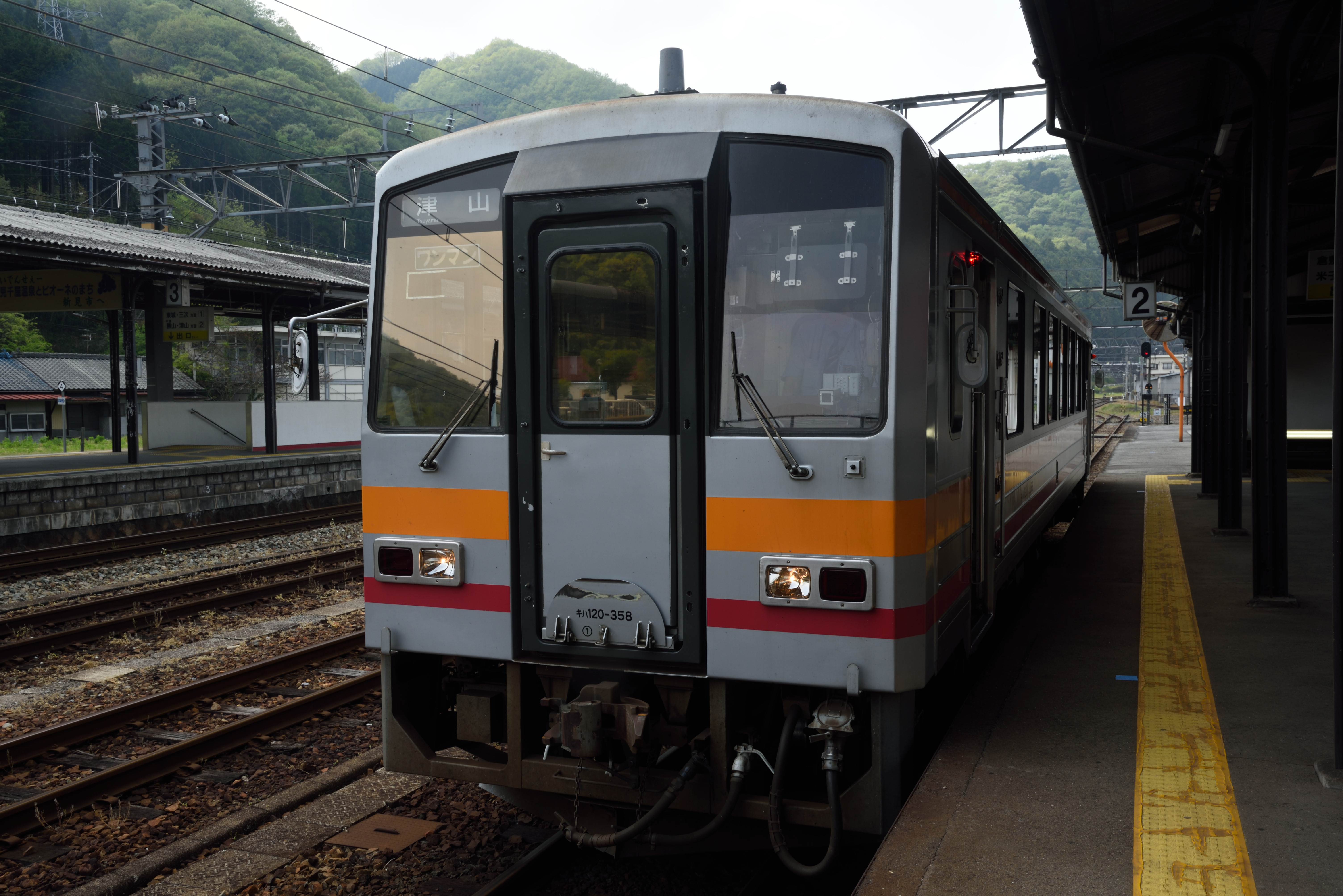 備美但の旅~姫新線 2017/5/9(9年前) 写真, 山陽, 岡山 (2017年5月1日) 新見から姫新線に乗って津山まで行きます.この区間は絶望的に本数がありません. 今回乗った,非電化なので電車でもないし1両なので列車でもない車両です. 田園風景を進んで行きます. ここにも大正から昭和初期に建てられた駅舎があるのですが,降りたら数時間は待たなくてはならないので,車窓から眺めるのみとしました.