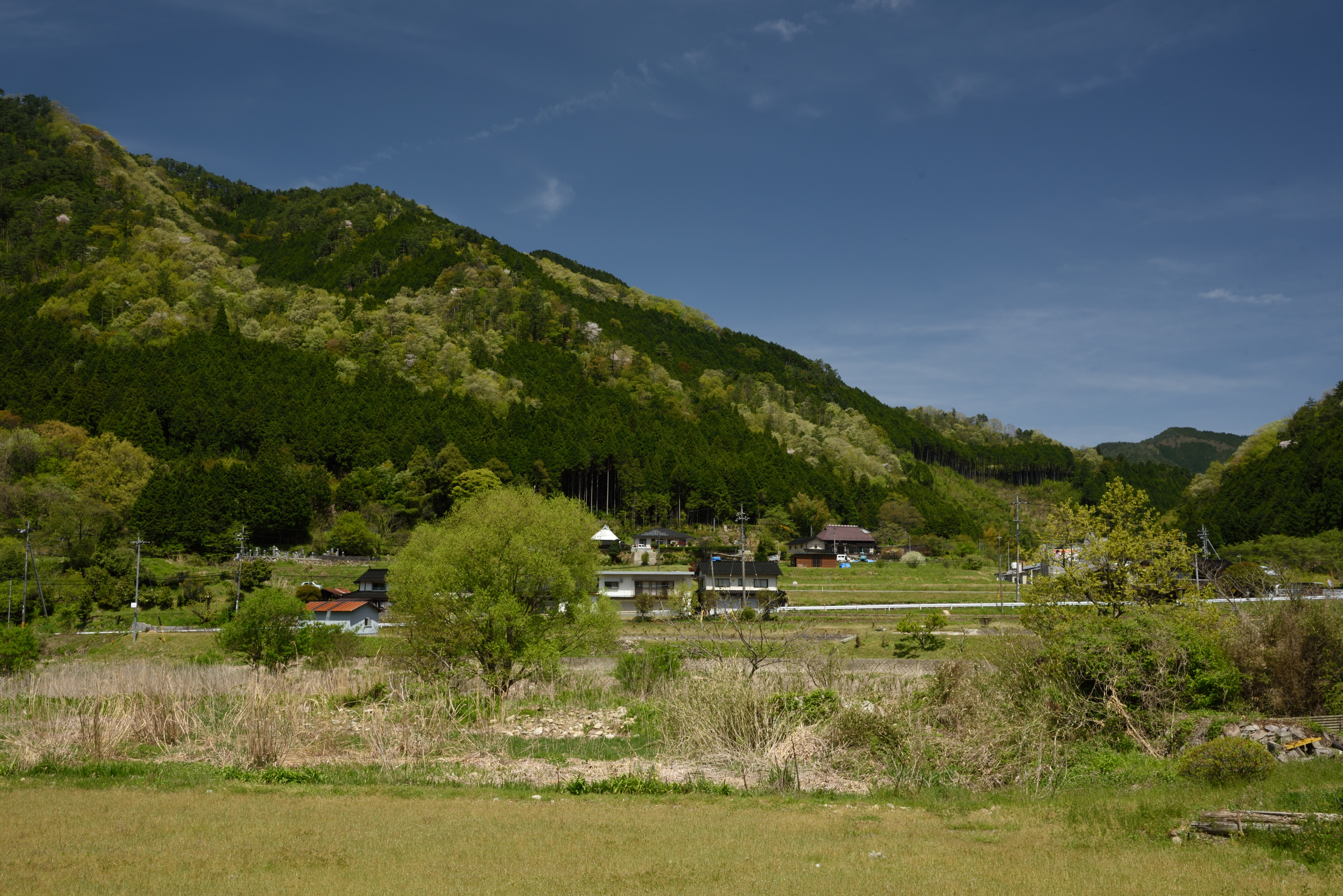 備美但の旅~線路沿いに駅を目指す 2017/5/14(9年前) 写真, 山陽, 岡山 (2017年5月2日) 県道6号と68号の交差点です.ここから北にある知和駅を目指します. 交差点の近くの踏切から. 道路は線路に沿って伸びています.線路から西側は県道6号で,車ががんがん通ります. 西側は地元の人が使うような道で,風情があるこちらを歩きました. しばらく歩くと線路から離れます. 遠くに橋梁が見えます. 知和駅の近くで線路をくぐって県道と合流します.