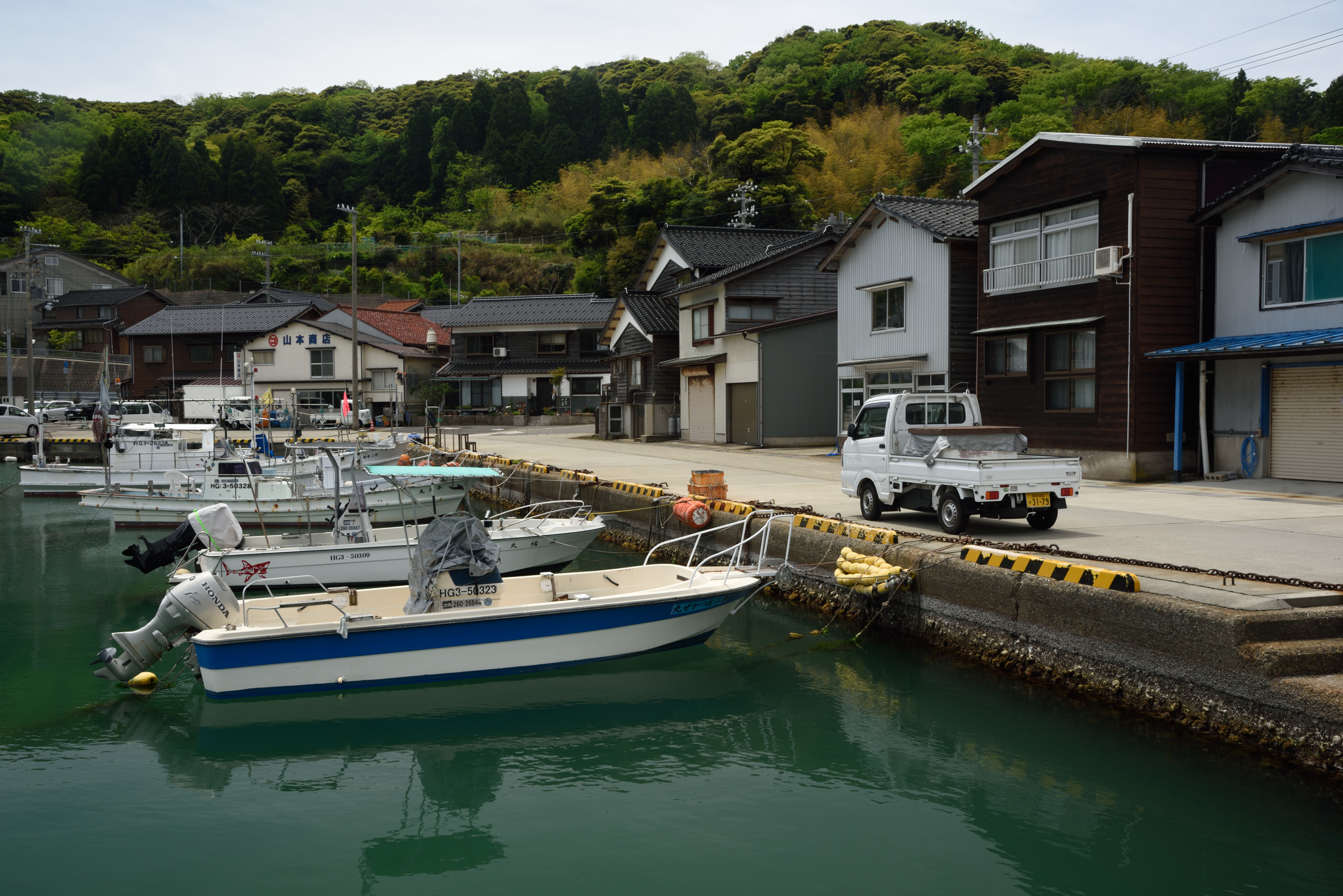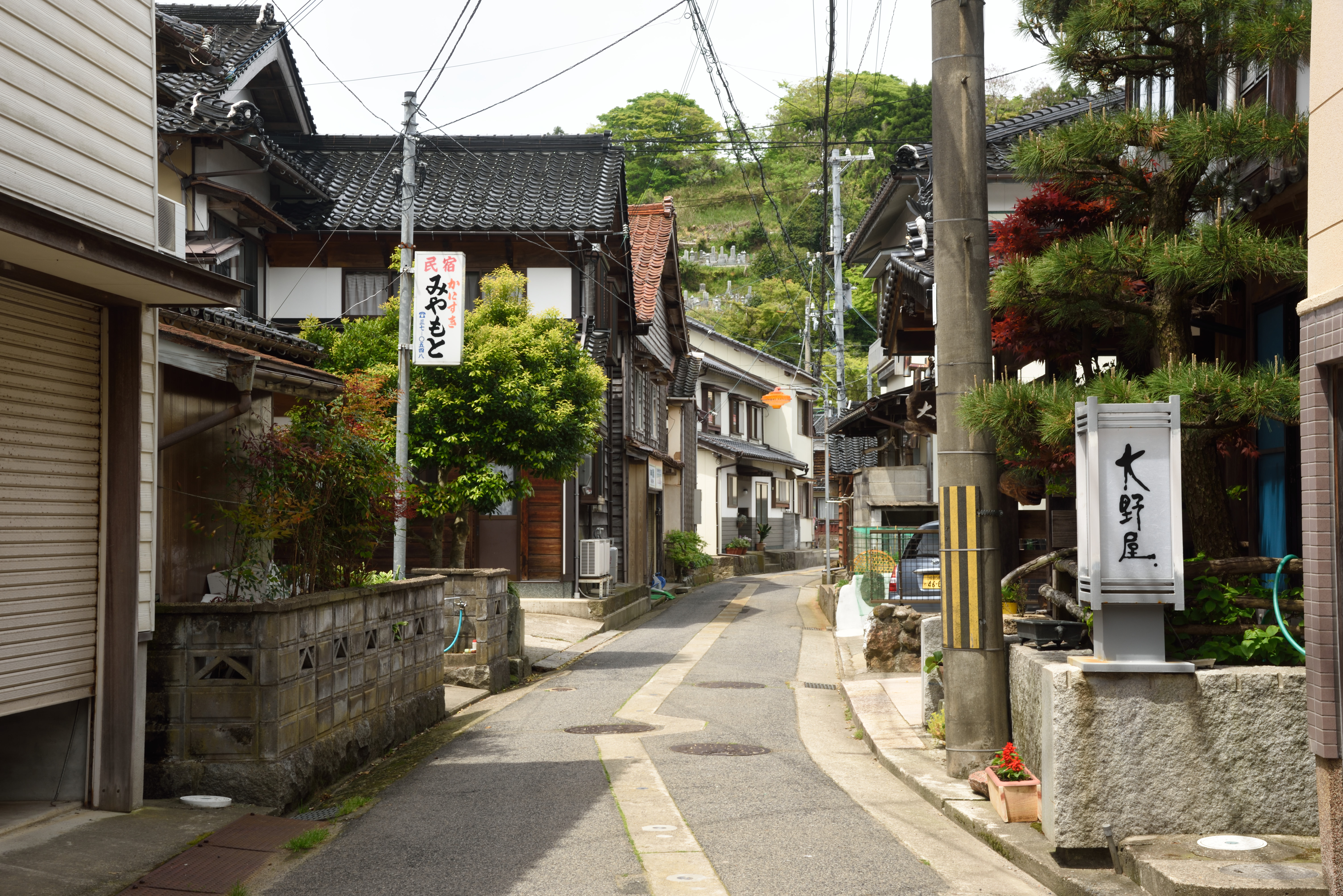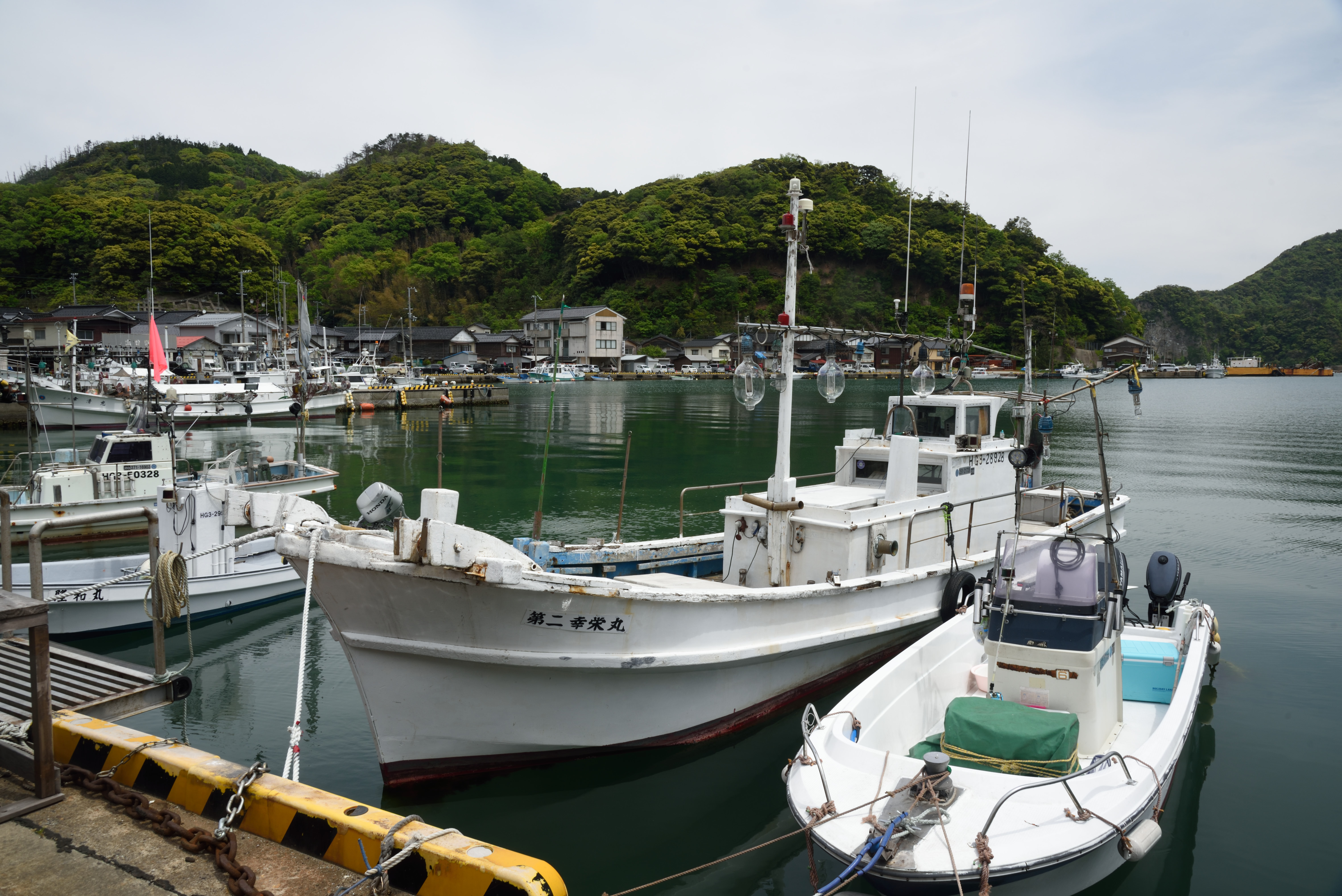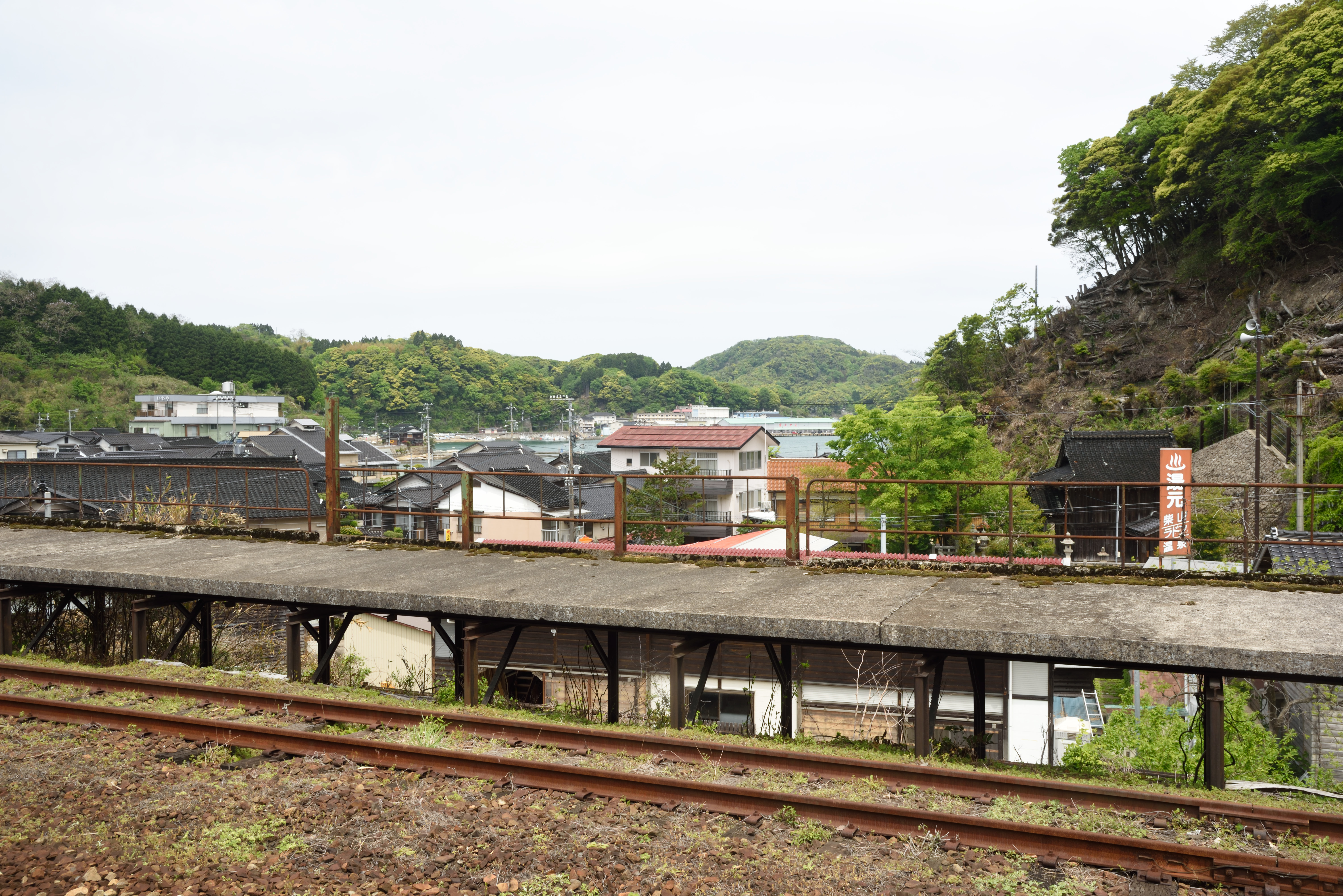 備美但の旅~柴山 2017/5/19(9年前) 兵庫, 写真, 近畿 (2017年5月3日) 浜坂温泉からバスに乗り,浜坂駅から山陰本線に乗って柴山駅で降りました. この日はまずここを散策します.残念ながら空は薄雲がかかっています. 2面2線のホームですが,向こう側は使われておらず立ち入ることはできません. 柴山は温泉とカニで有名で,駅前には旅館が立ち並びます. 海岸に出ました.柴山港に向かって歩いていきます. しばらく歩くと波止場がありました.釣りをしに来ている人たちが何組買いました. さらに奥に行くと,昔ながらの面影を残す漁村がありました. 高台に大放神社がありました.残念ながら眺めはよくありませんでした.