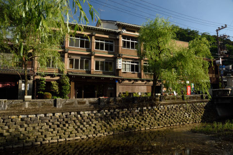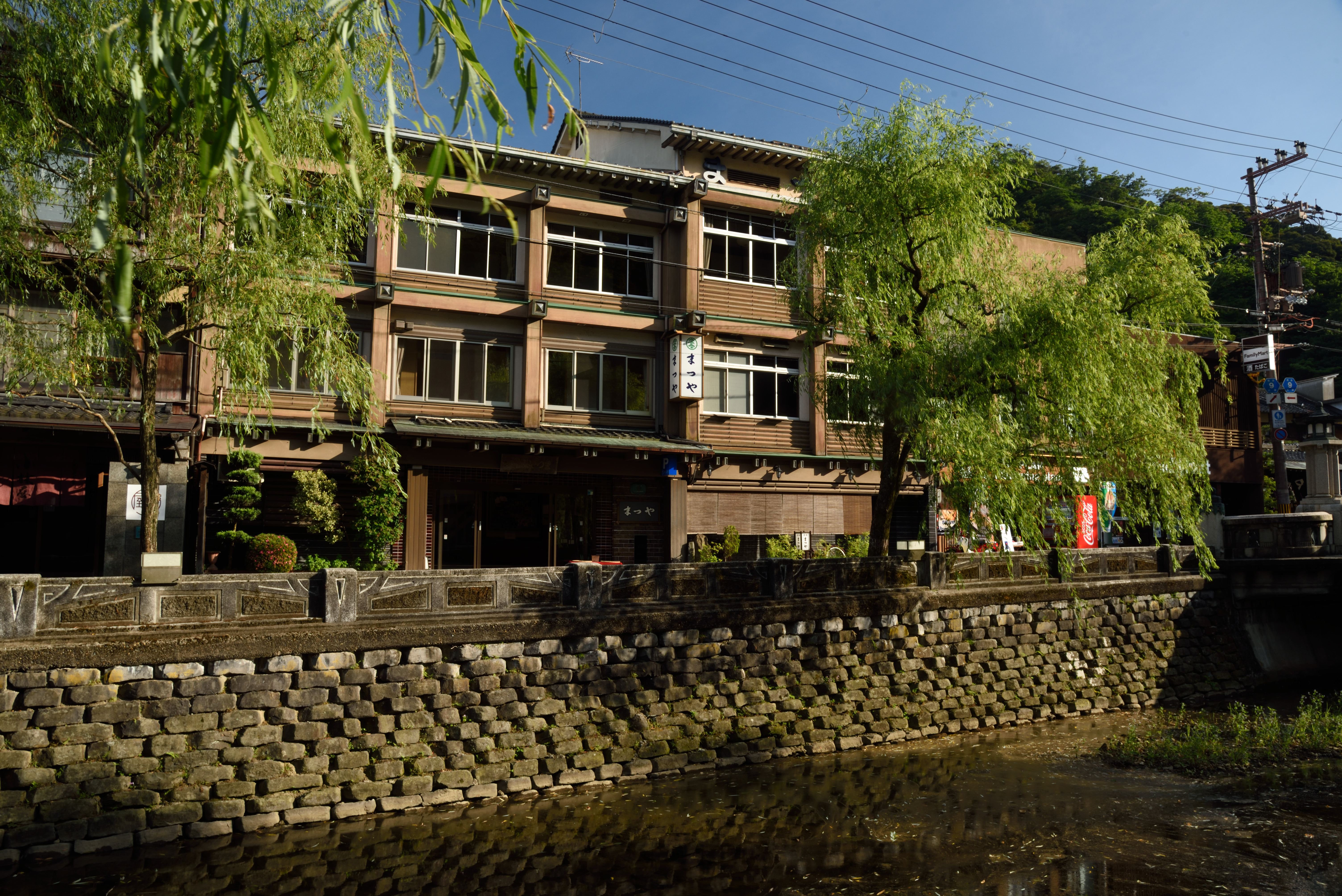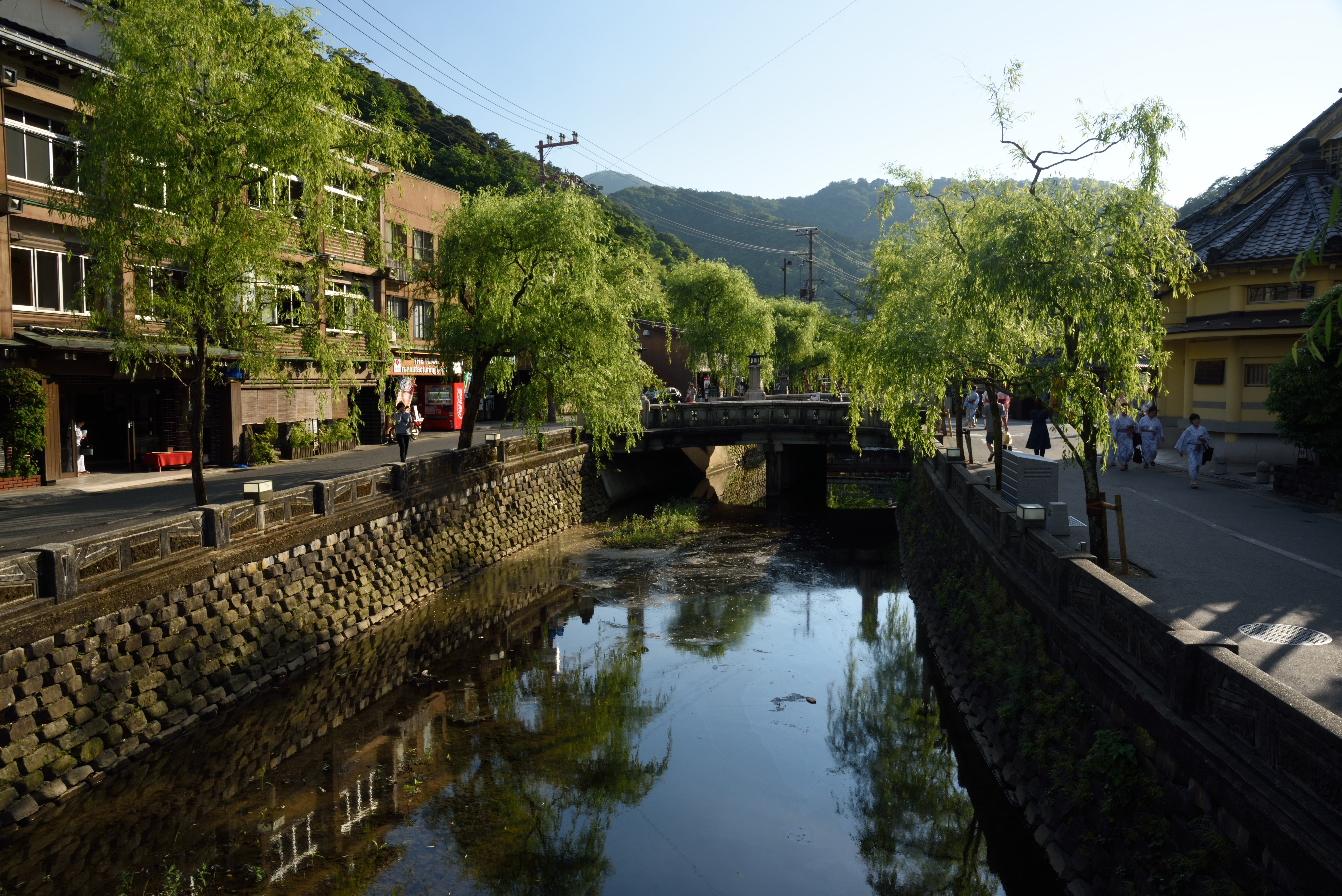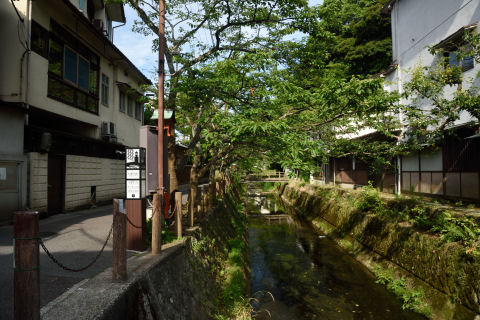 街の中心から駅の方へは大谿川が流れています.川の岸には柳が立ち並び,川には石橋がかかり,建物も調和して古きよき温泉街の景観を作り出しています.