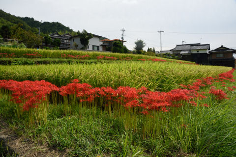 車塚古墳付近 2017/9/30(9年前) 京都, 写真, 近畿 (2017年9月24日) 湯の花温泉の次は車塚古墳を目指し北に移動しました. 途中で見かけた,飛び出し注意を喚起する看板.人の部分が砕け散っていて,キケンであることをすごく感じさせます. 車塚古墳付近は広大な田んぼが広がっていましたが,結果として彼岸花は穴太寺ほどは見られませんでした. 周辺にはいくつも史跡がありました.まず車塚古墳. 出雲大神宮.709年創建. 出雲大神宮の狛兎. 最後に愛宕神社.伝えによると創建は507年で,現在愛宕山にある愛宕神社はここから勧請とのことです.
