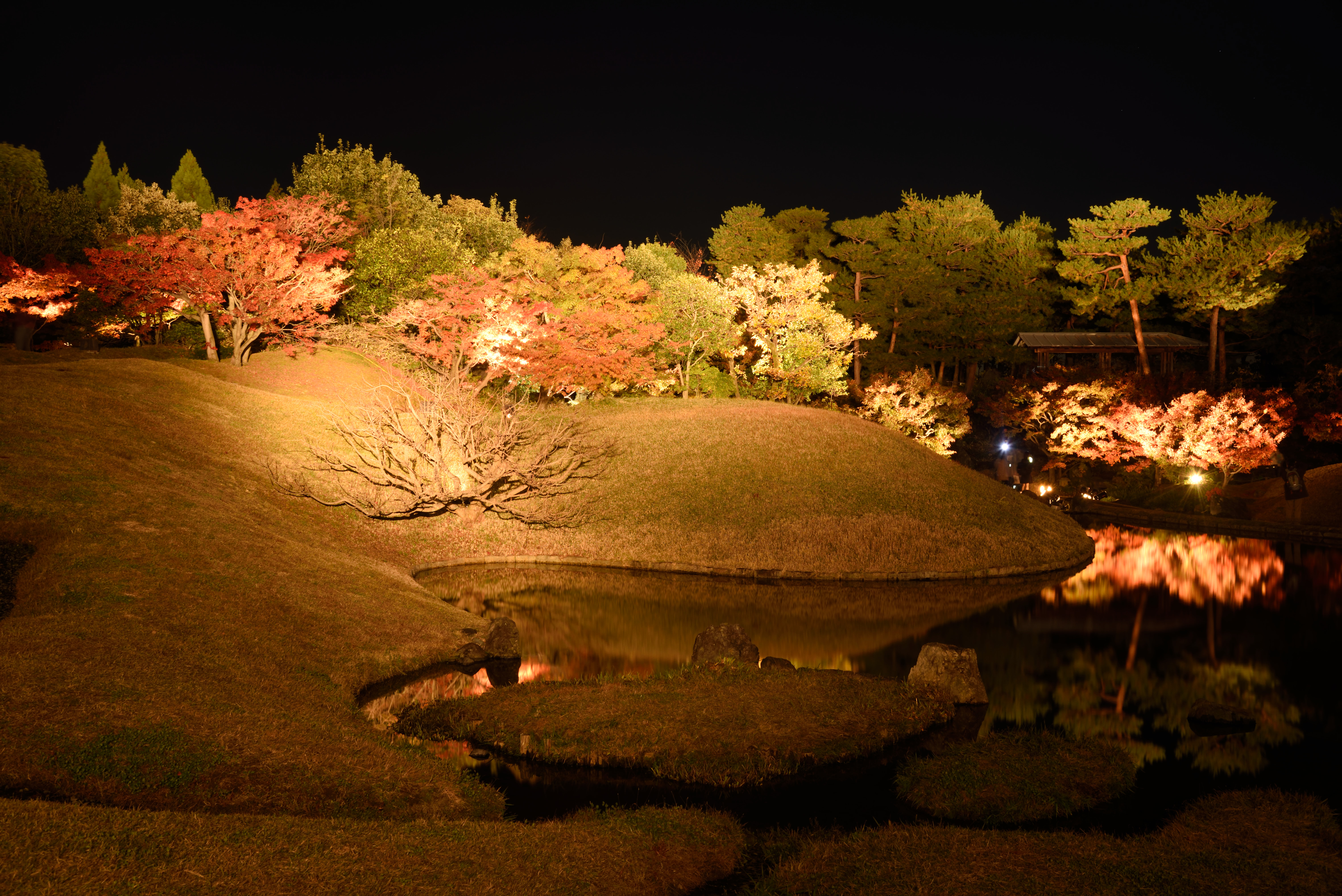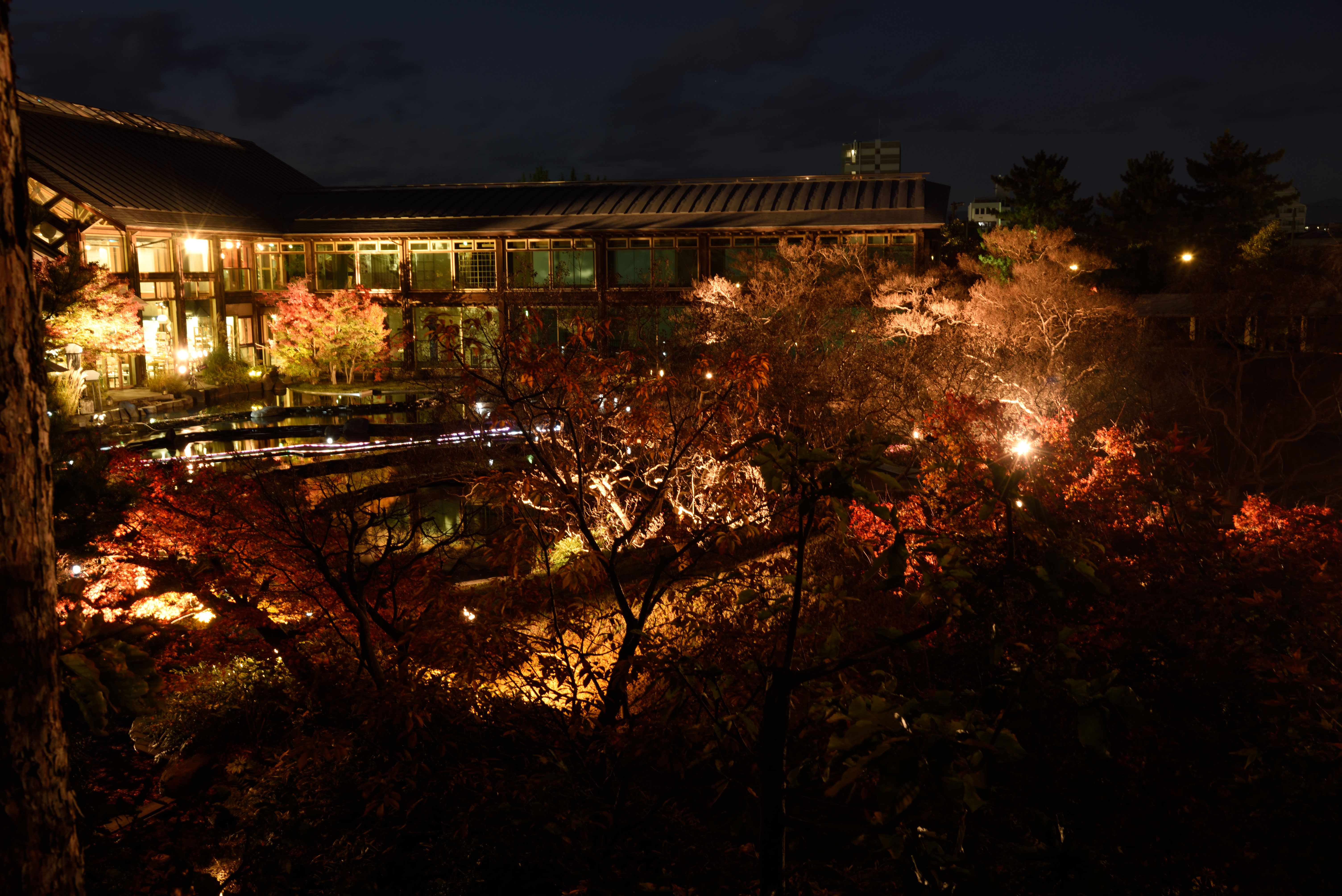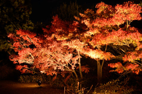 梅小路公園の紅葉ライトアップ 2017/11/24(8年前) 京都, 写真, 近畿 梅小路公園の朱雀の庭で紅葉がライトアップされていると知ったので行ってきました. 水鏡に映る紅葉. 野筋も少し入れて. 庭園入口となる建物2Fから. ライトアップの紅葉を近くで. ついでに京都鉄道博物館に行く前に梅小路公園内で撮影した光景.