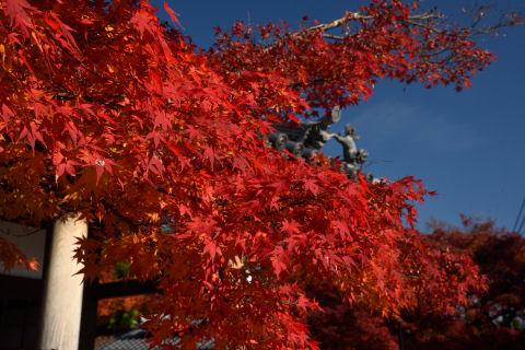 長岡京で最後の紅葉めぐり 2017/12/3(8年前) 京都, 近畿, 長岡京 今年の紅葉も大分散っている状況ですが,とても天気が良かったので残っている紅葉を求めて長岡京を自転車でまわりました. まず行ったのは柳谷観音.奥之院参道の紅葉はまだきれいに残っていましたが,他はくすんでいました. 本堂から庭園を挟んで上書院. 寂照院という寺の門の紅葉がとてもきれいでした. 市指定文化財の金剛力士立像. 光明寺のもみじ参道を外から確認. こちらも色あせているようでした.
