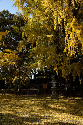 三栖神社のいちょうの黄葉 2017/12/3(8年前) 京都, 写真, 近畿 先週訪れたときはまだ緑がちだった三栖神社のいちょうが,この日はきれいに黄葉していました. 向かって右側の大いちょう. 左側のいちょうも入れて. 視線を下げて撮影.落葉や日射しがいい感じです. 鳥居を挟んで. ここで他の人に会うことはまずないのですが,今回は数人訪れていてこの光景を眺めていました.