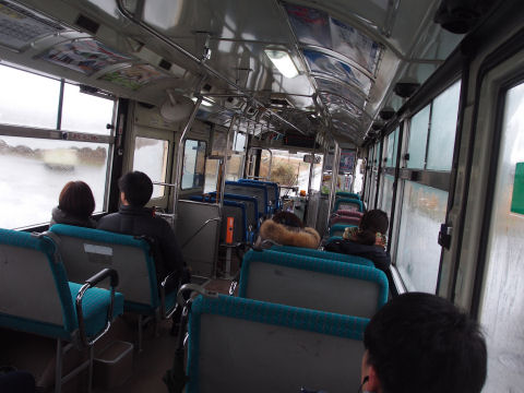 こちらは東尋坊へ向かうバスの乗客.窓の外は曇って外が見えませんが,みぞれです.