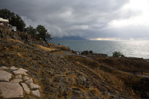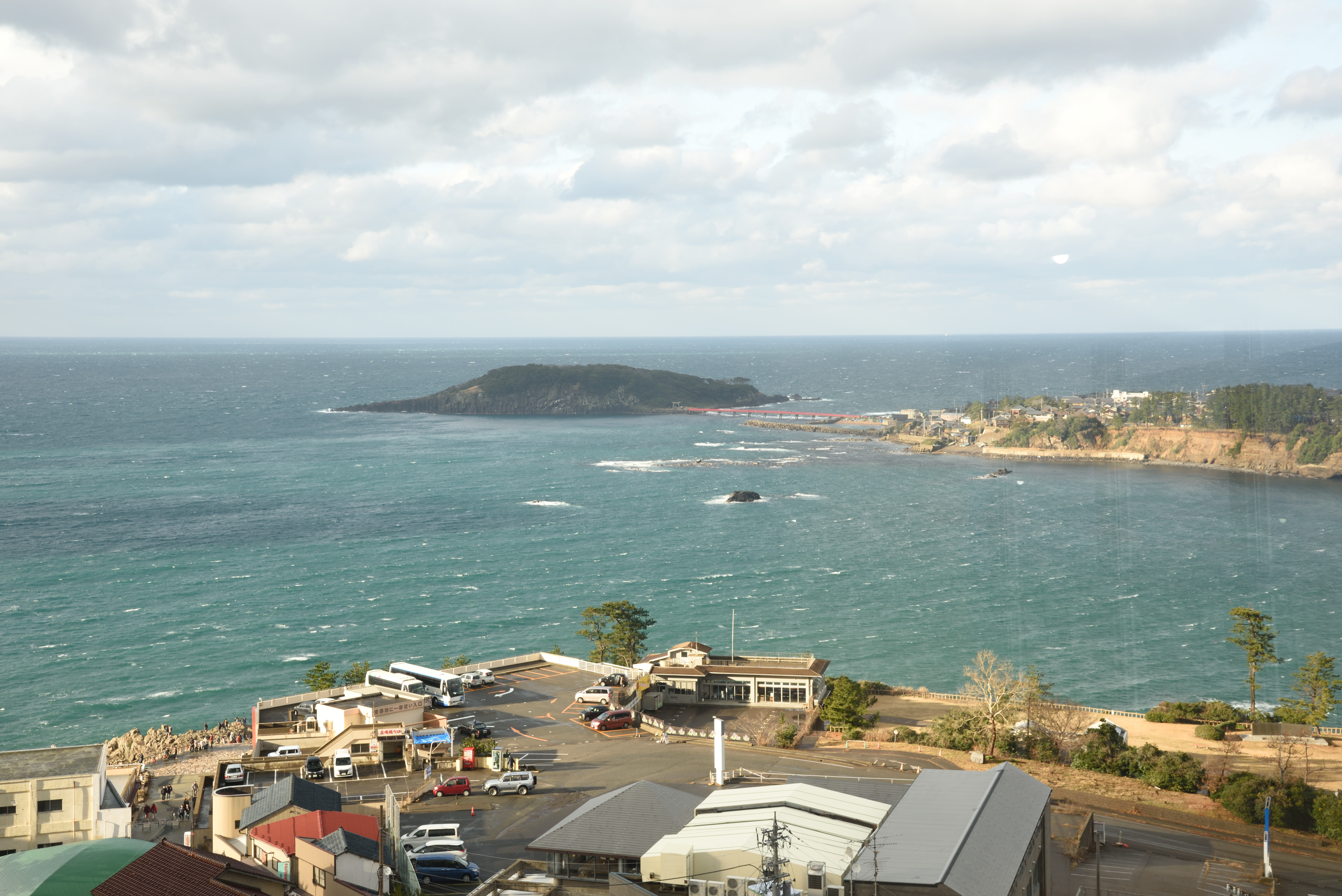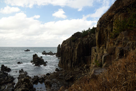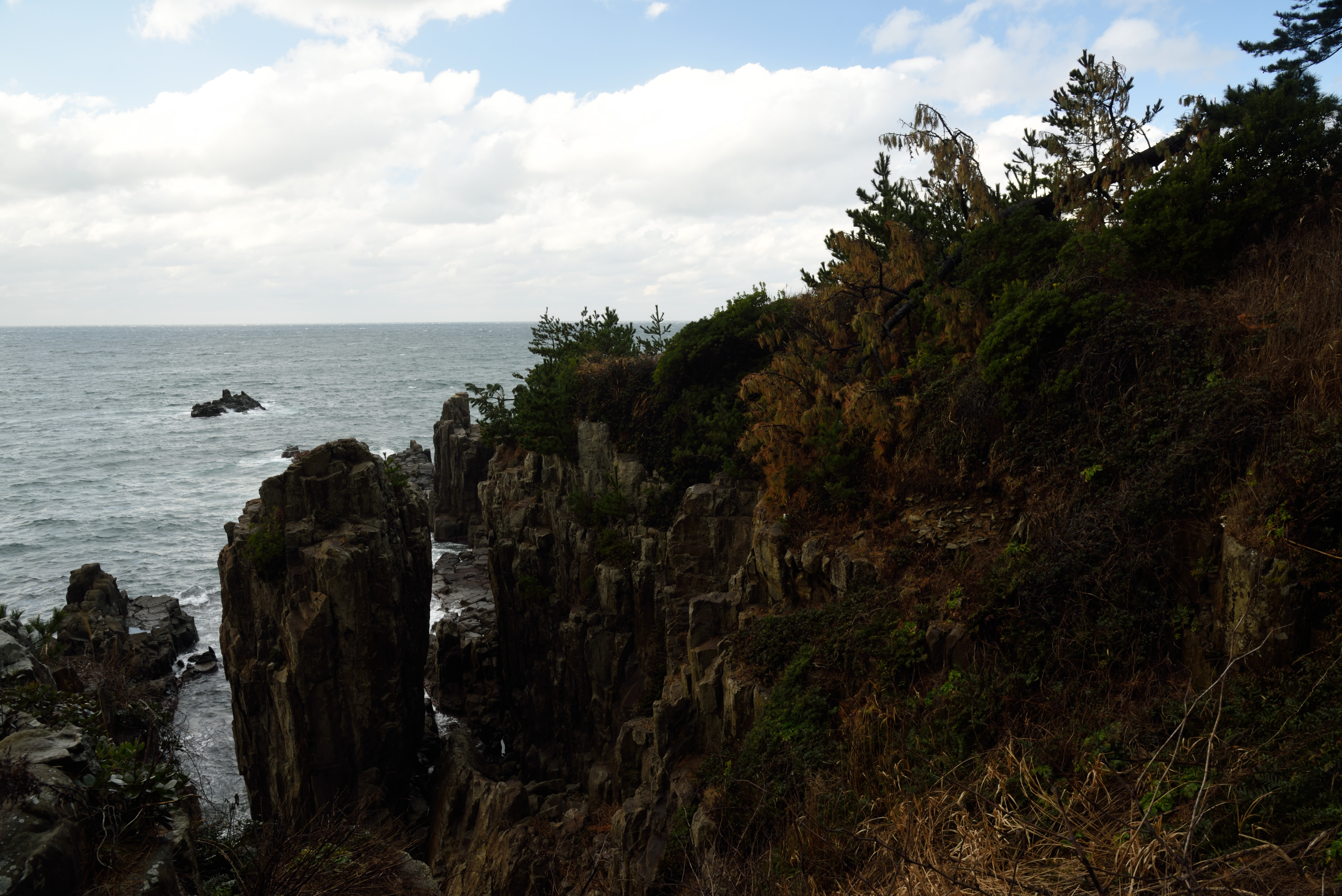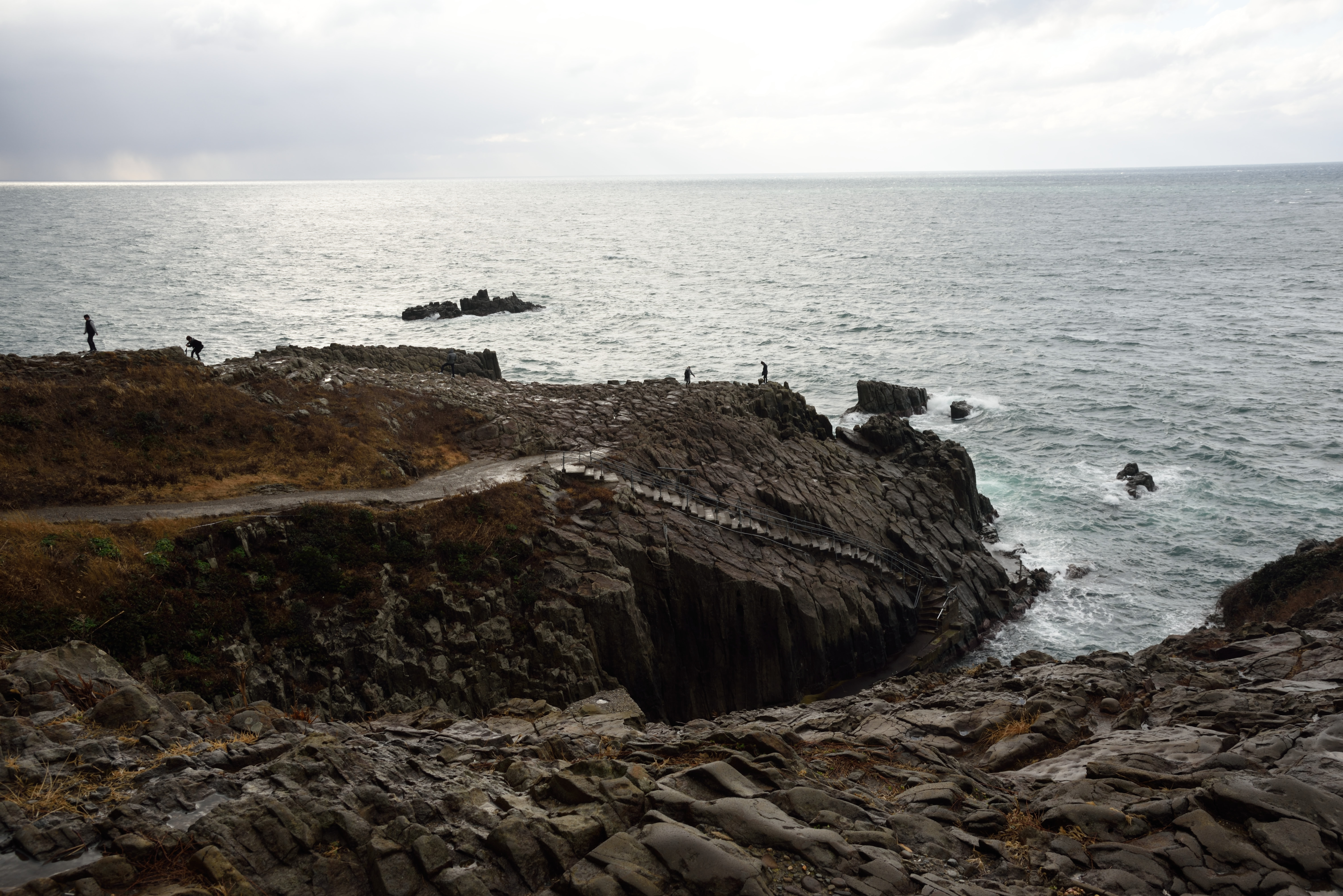 東尋坊のイメージのような見上げる崖といった構図は撮れませんでした.遊覧船からなら撮れたのでしょうかね.なお冬で波が荒いのか,遊覧船は見られませんでした.