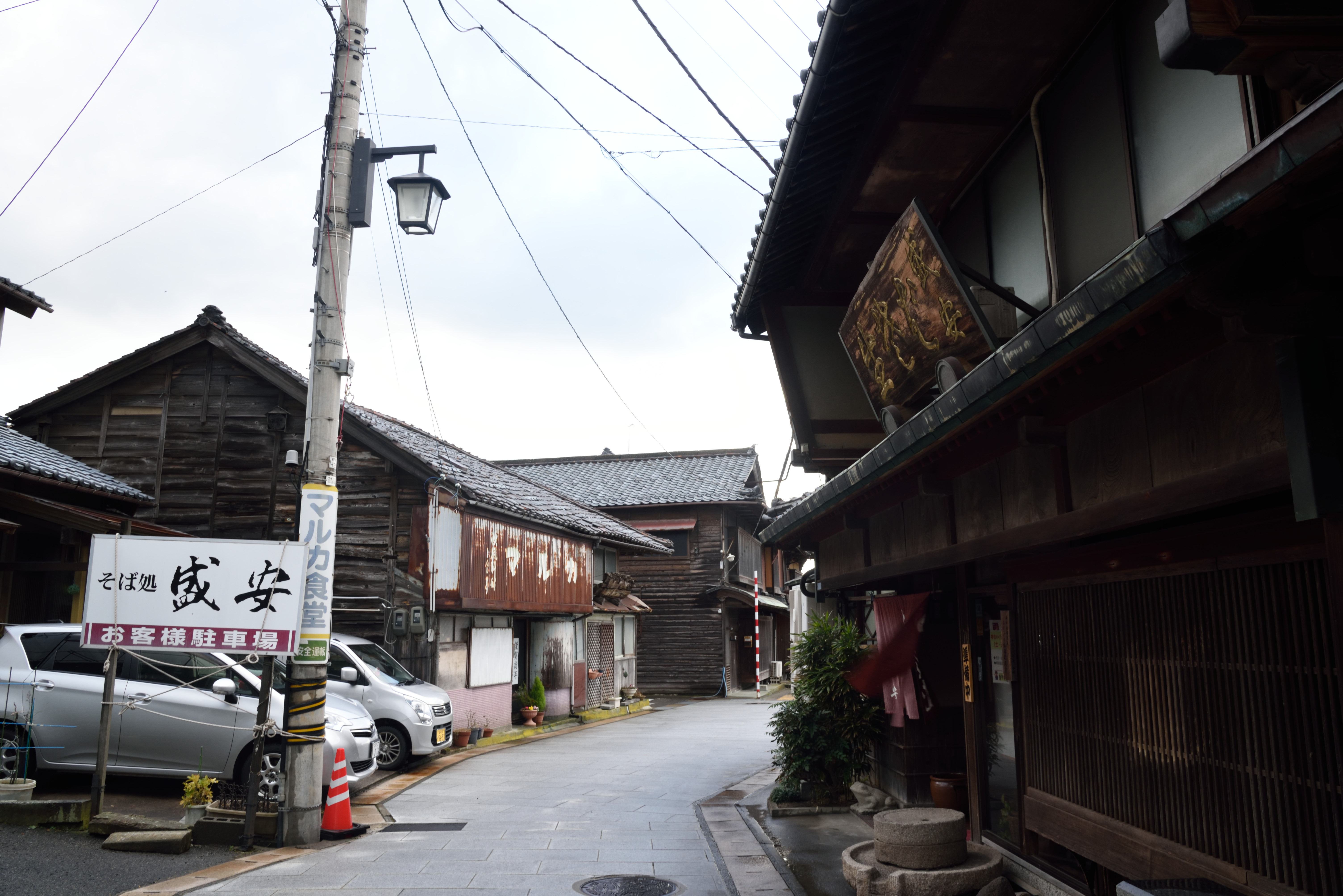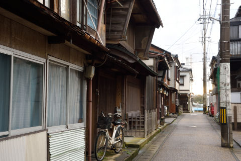 湊町三國 2018/1/18(8年前) 写真, 北陸, 福井 (2018年1月6日) この日の目的地は東尋坊だったので宿のある福井に戻ります. バスから電車へ三国で乗り換えますが,ここは古い町並みがあるようなのでうろついてみました. 店や施設がある辺りです.いい雰囲気です. こちらは普通に生活しているであろう民家. 観光地だけでなくこちらもいい雰囲気です. 旧森田銀行本店. 三国祭の山車の格納庫.デカい人形が覗いていてギョッとしました.