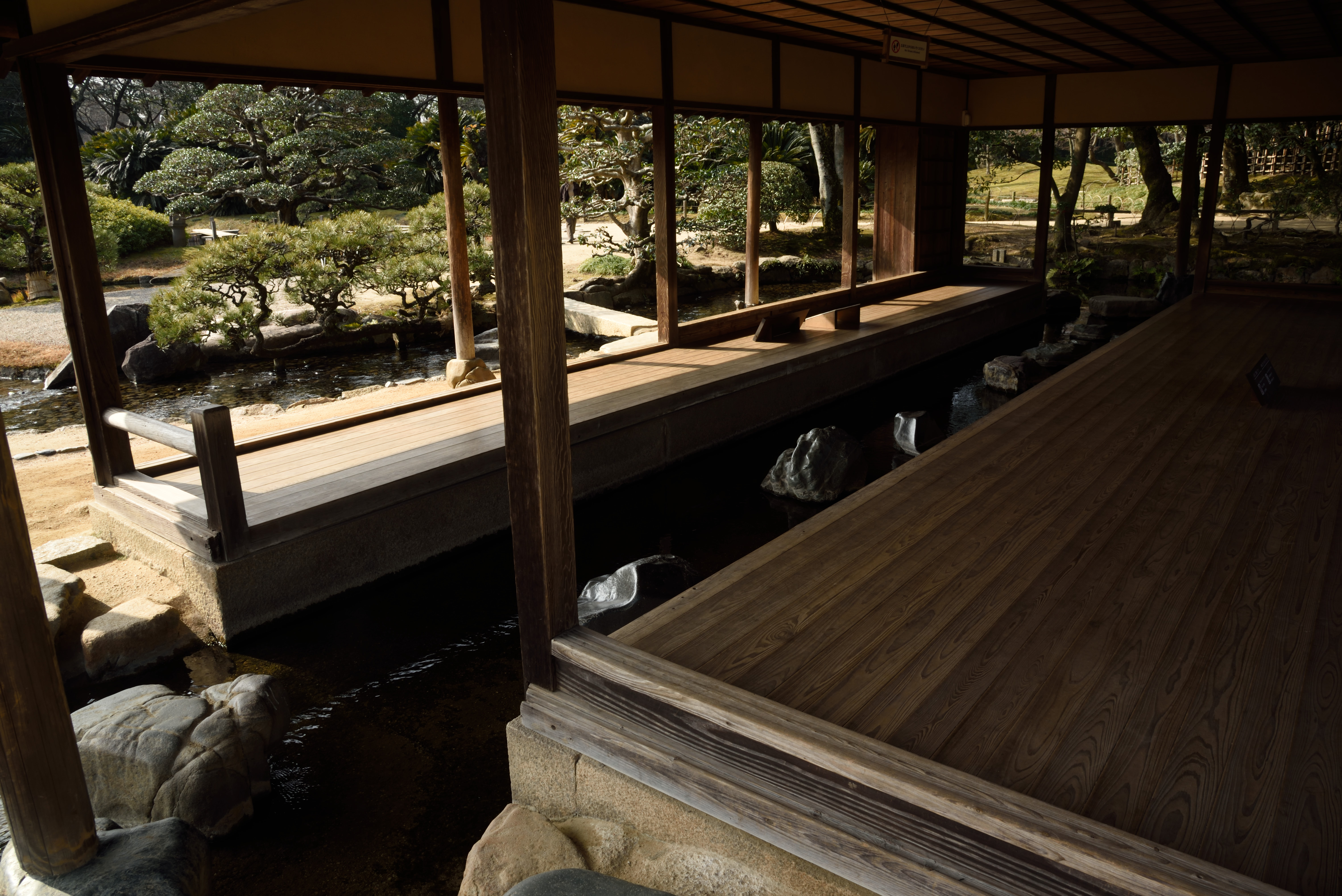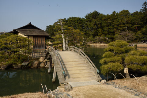 後楽園 2018/1/29(8年前) 写真, 山陽, 岡山 (2018年1月21日) まずは後楽園に行きました.これで日本三名園制覇です. とても広かったです. 下に水を引き込んでいるめずらしい建物,流店. 梅林・桜林.花の頃はきっときれいなことでしょう.梅はつぼみがついていました.