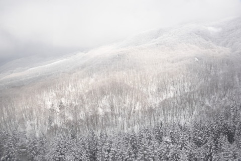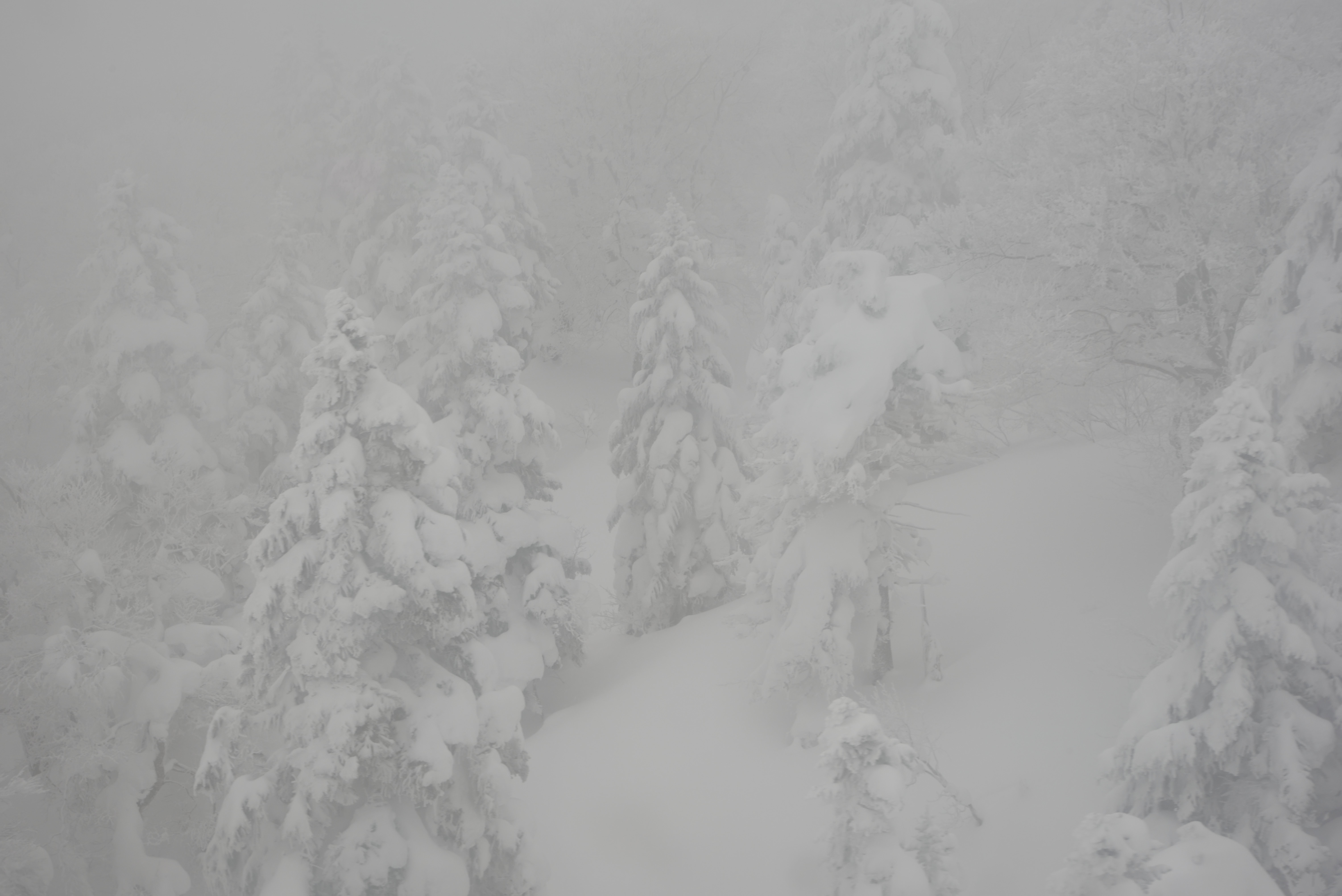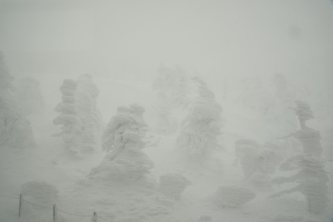 晴天の下できれいに樹氷を見られることはまれで,ほとんどは視界が悪いということは事前情報を得ていましたが,やっぱりうまくいきませんでした.
