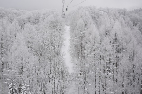 ゴンドラの行き先,地蔵山頂駅は常に吹雪いていました.