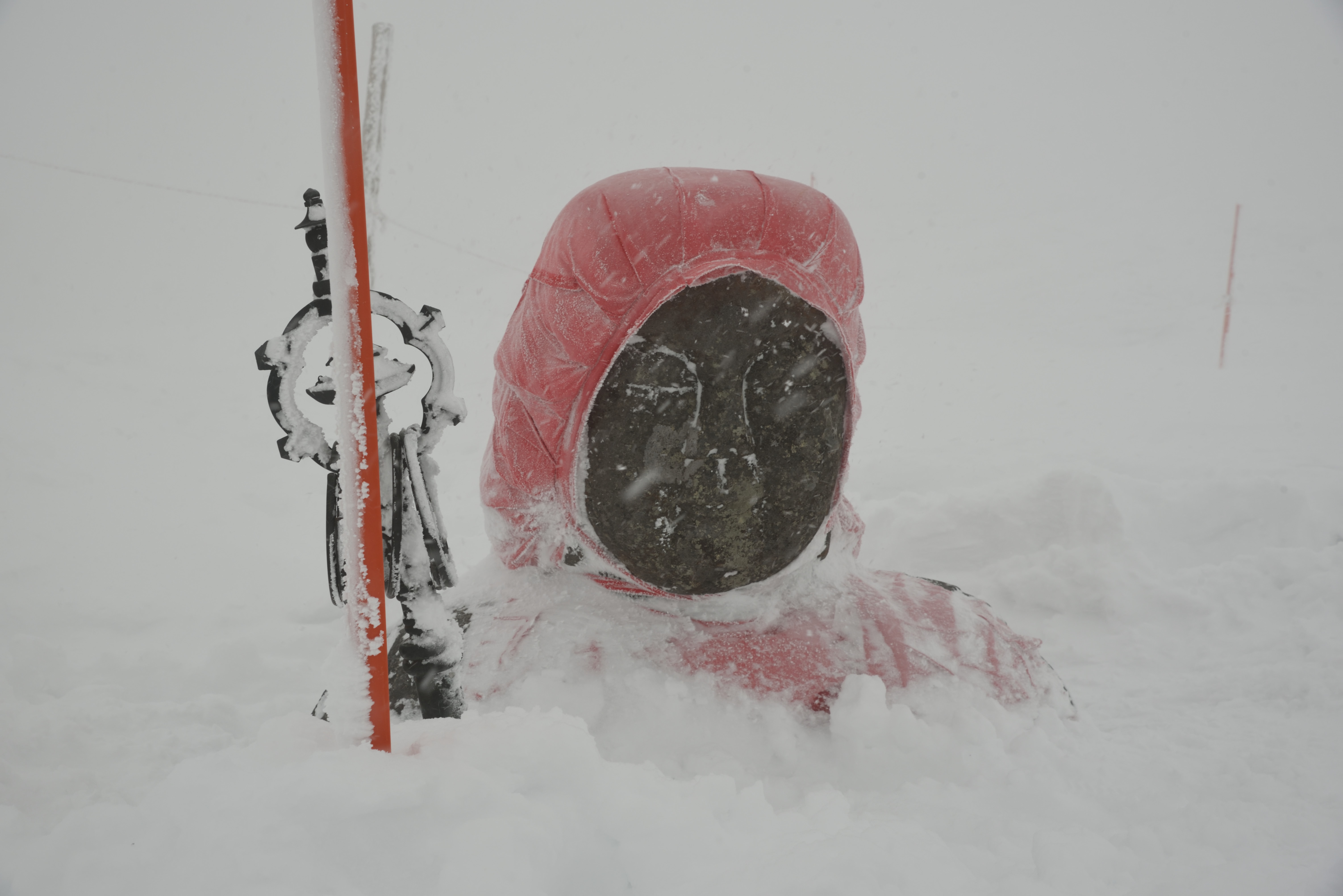 ここからさらに高い所へ登って行ったわけですが,これ以降は吹雪で相当視界が悪く,肉眼でもなんとか見えるくらい,写真にはほとんど映らない状態でした.