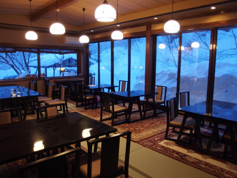 こちらは食堂のひとつ.朝食で利用しました.渓流に面しています.
