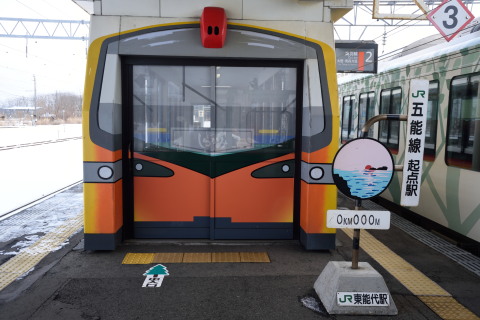東能代駅から五能線になります.起点を示す看板があり,撮影のため数分停車していました.