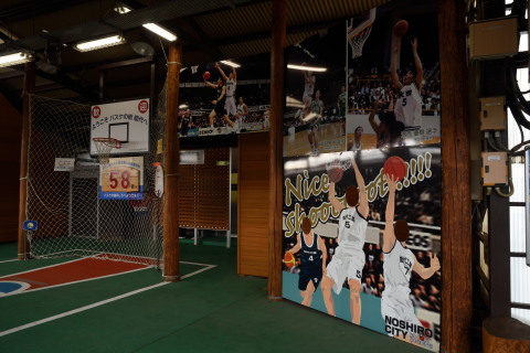 能代駅.バスケットで有名ということで,それに関するものが設置されています.