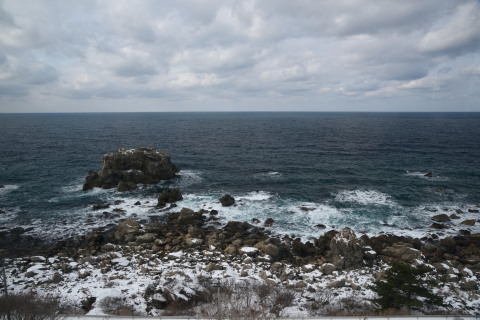 深浦を過ぎたあたり.この辺が五能線の最高のビューポイントだそうです.