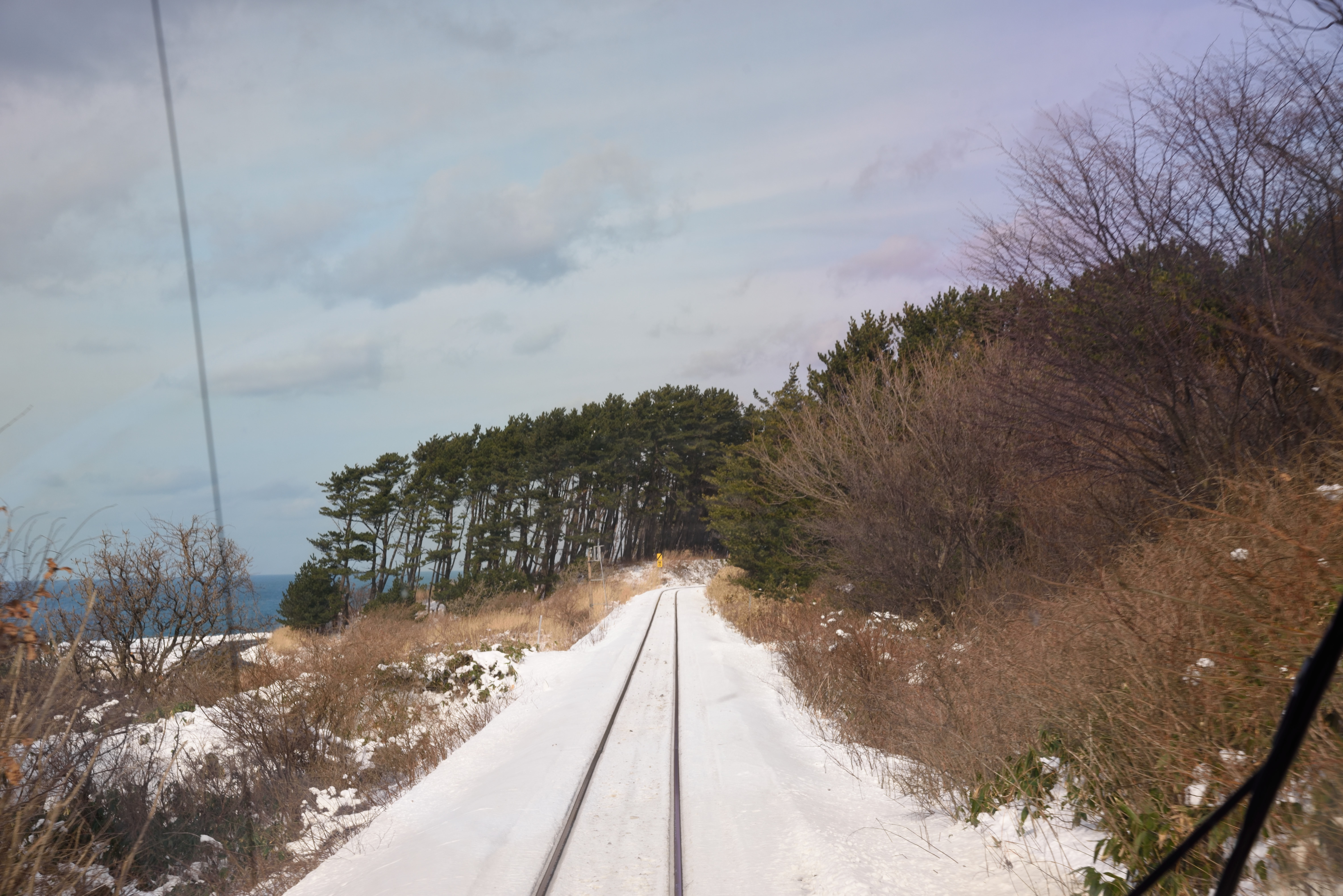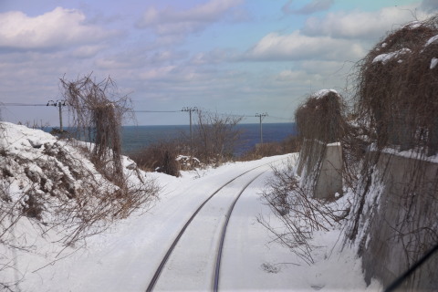 岩舘を過ぎたあたり.時折電車の速度がゆっくりになります.