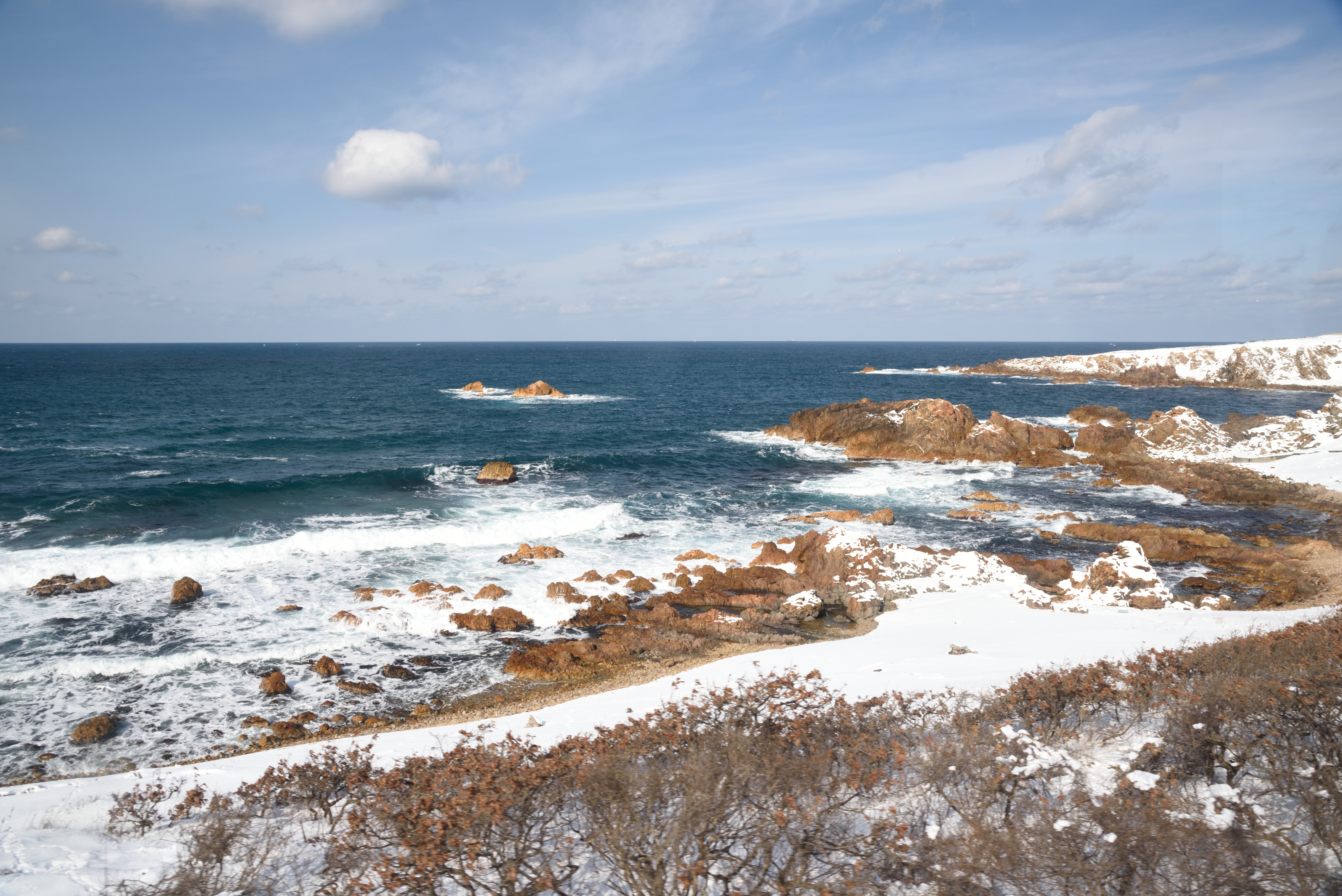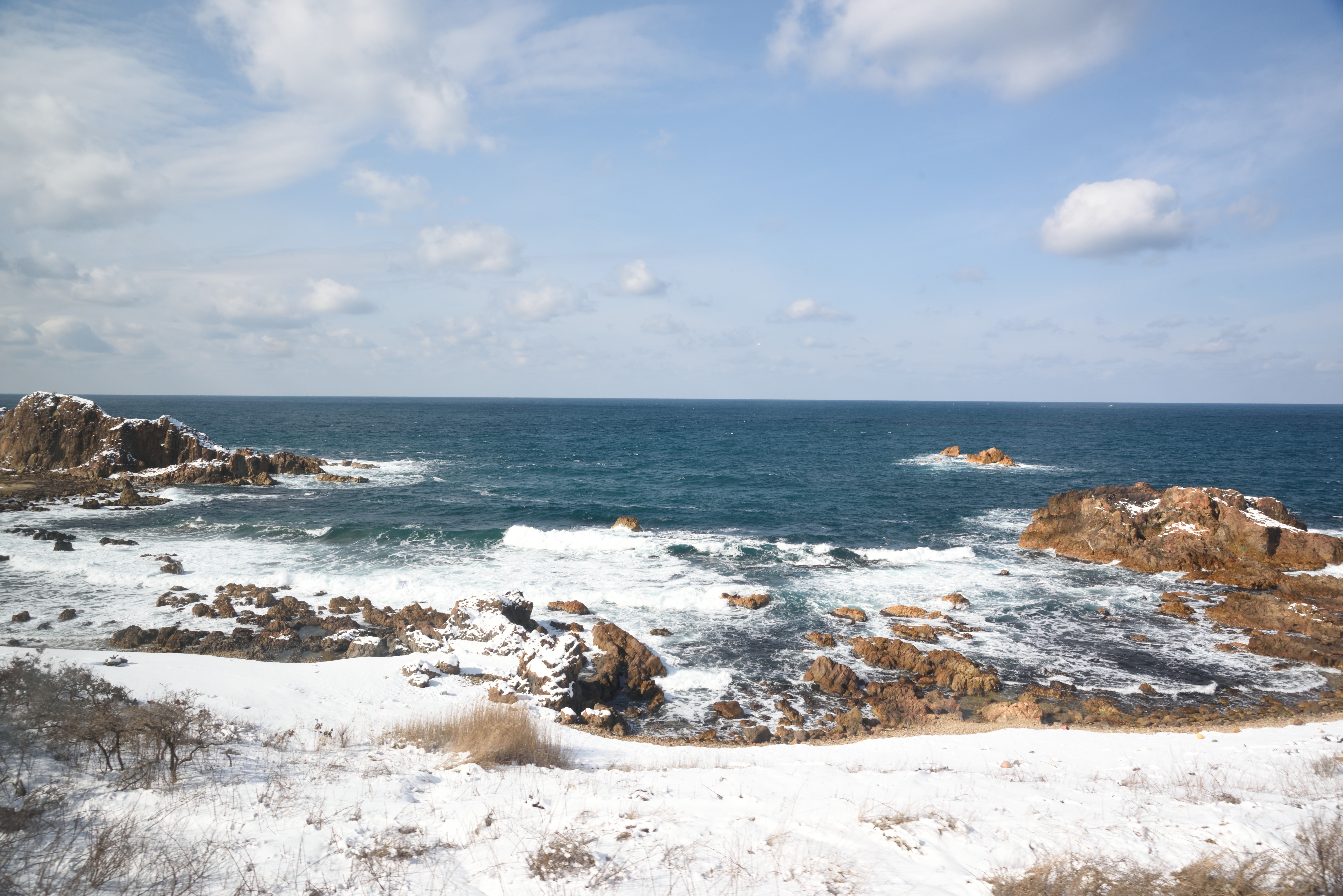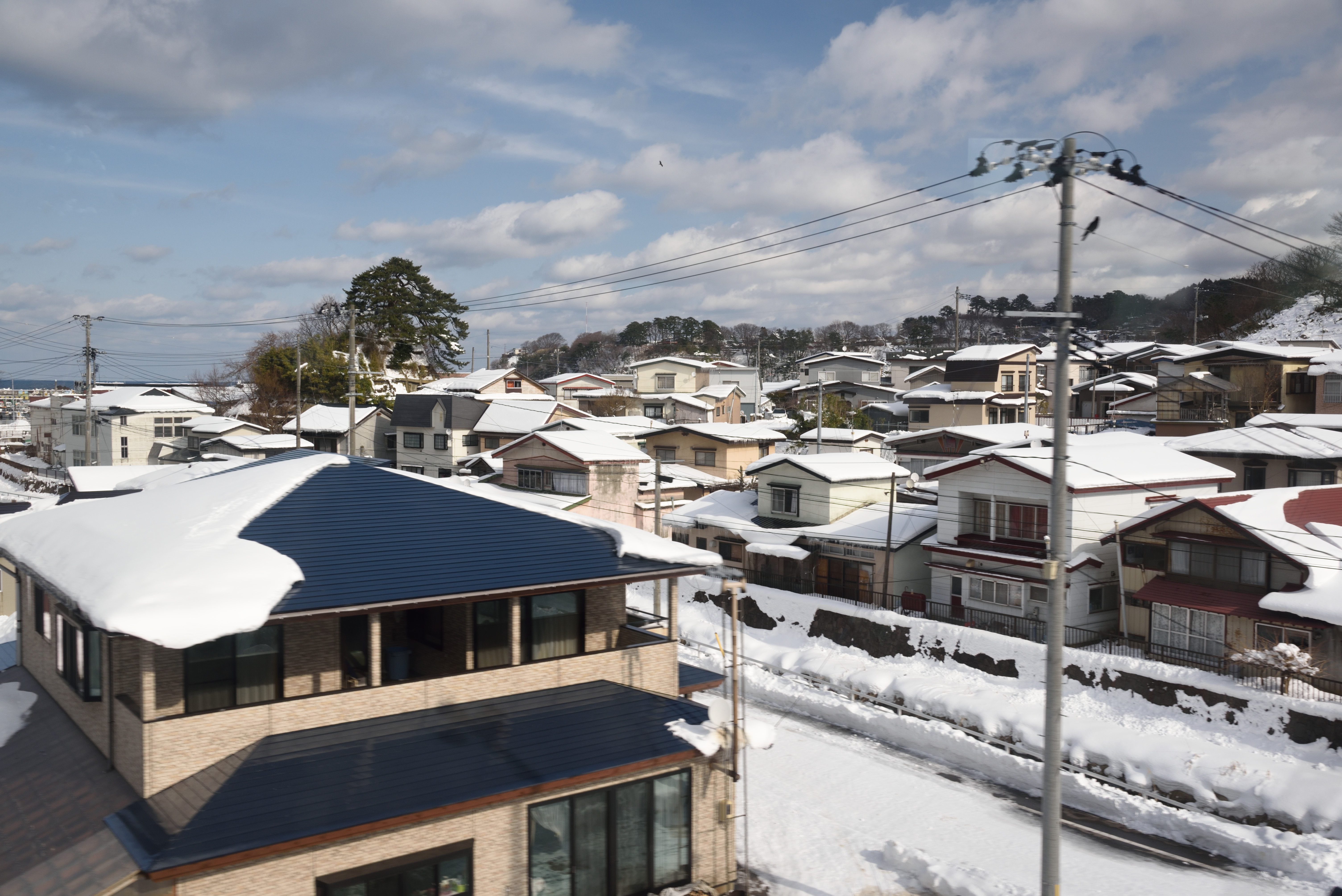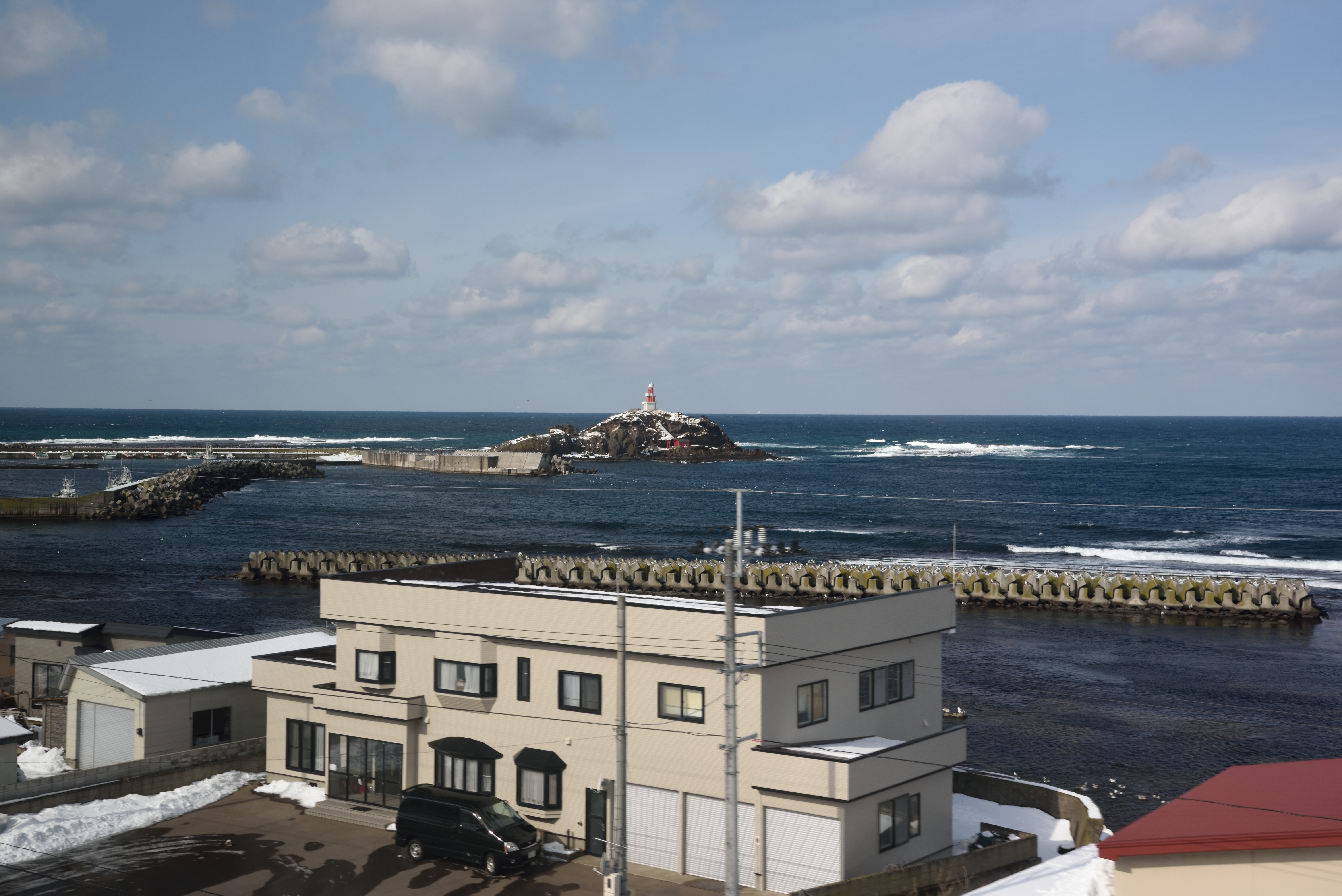 雪の港町.