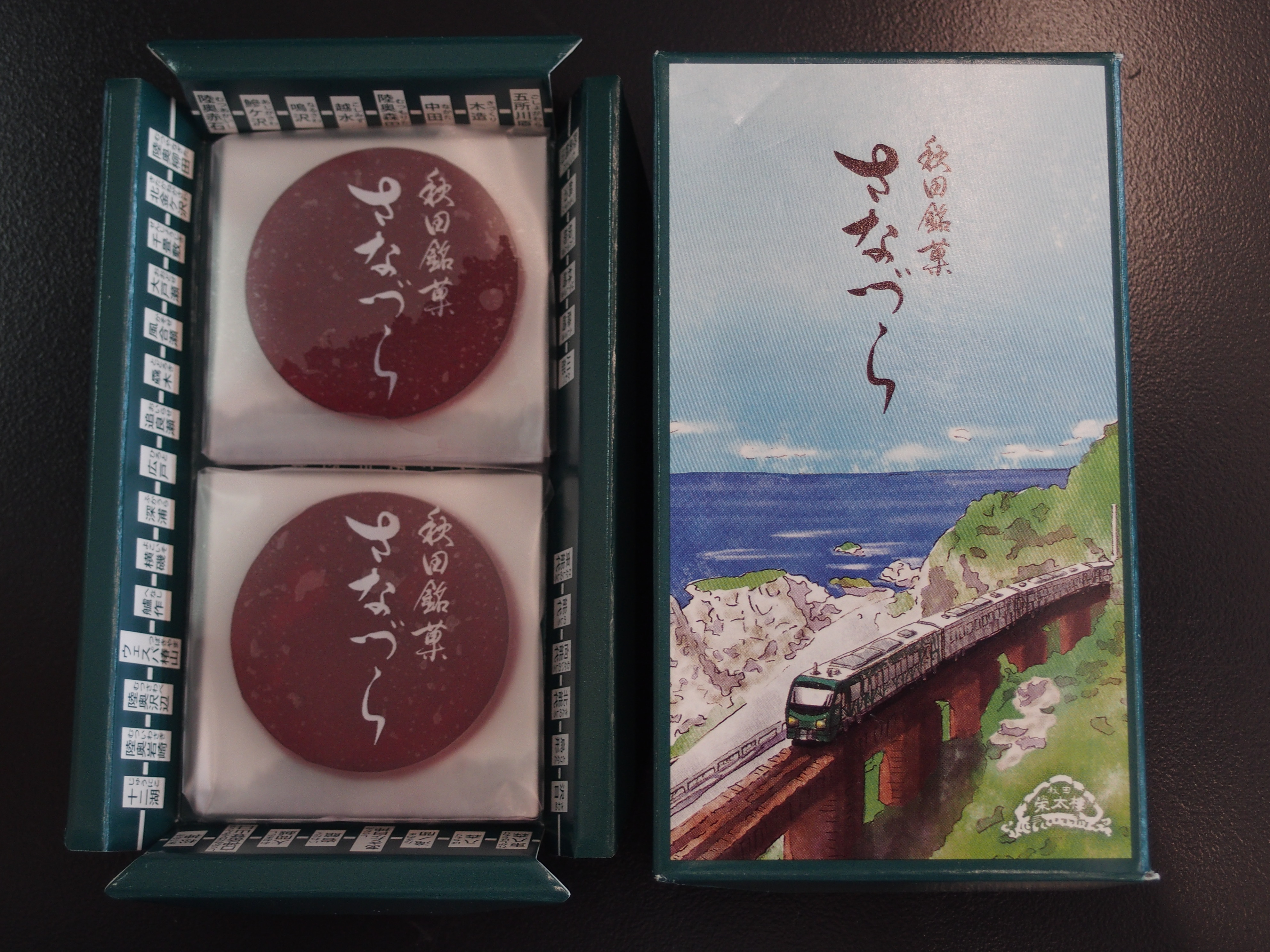 お菓子を買いました.さなづらという菓子で,リゾートしらかみ仕様です.