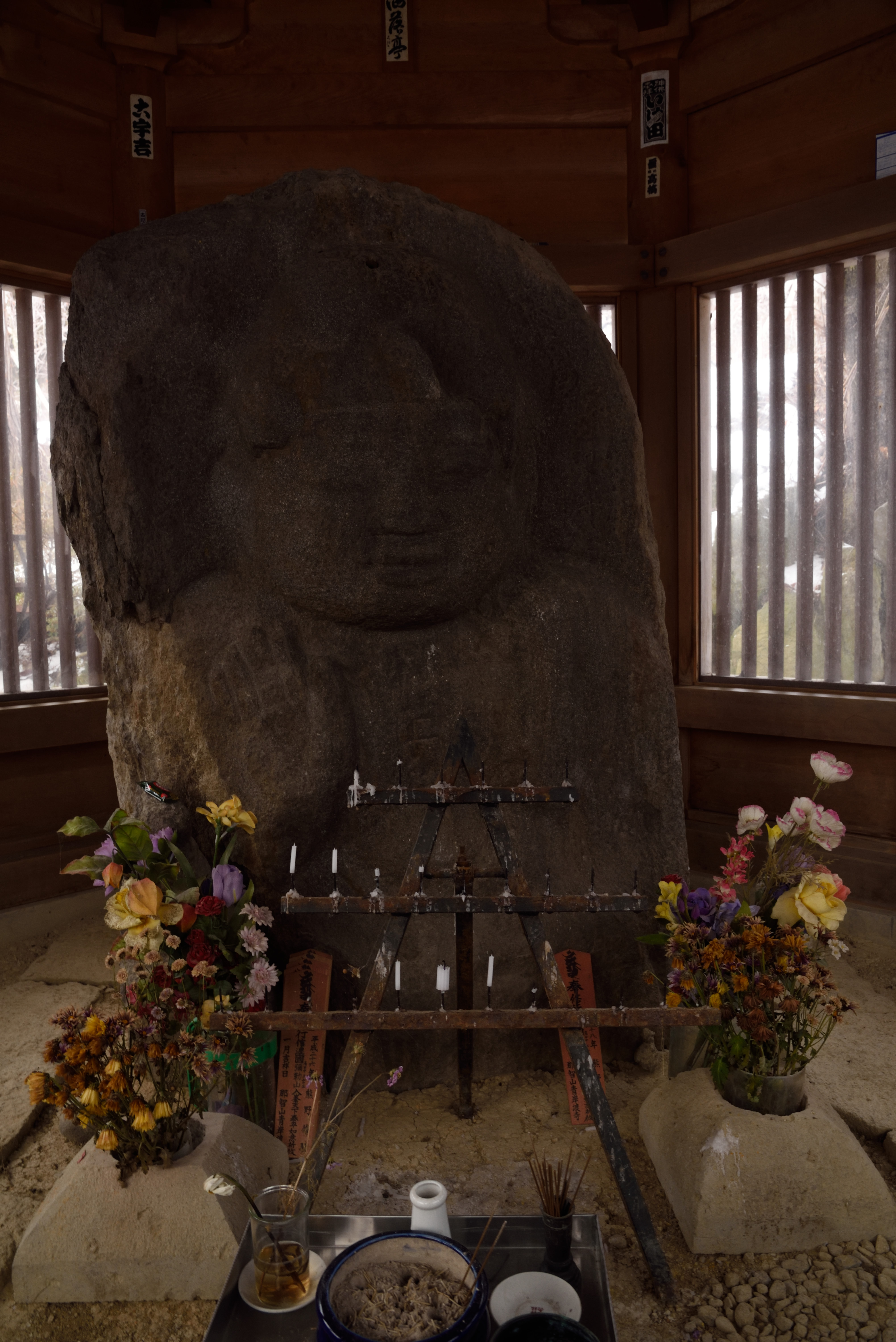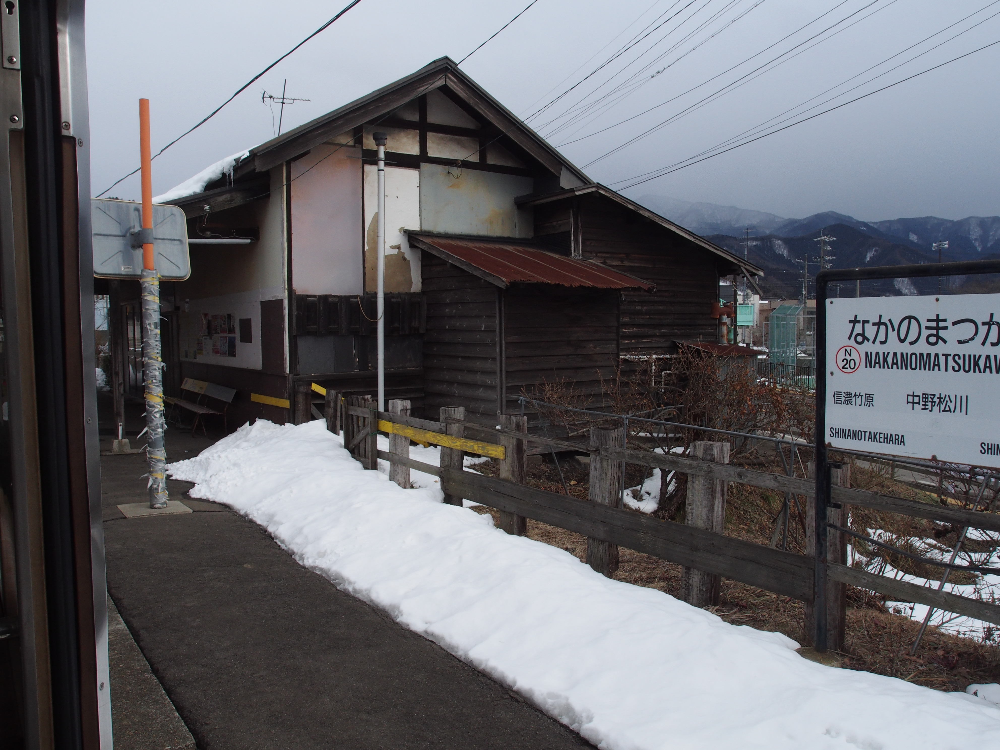 野沢温泉から渋温泉へ 2018/2/20(8年前) 写真, 甲信越, 長野 (2018年2月12日) この日の宿は渋温泉にしていたので,野沢温泉は1時間ほどで発ちました. この日飯山線は大雪により一部運休していましたが,これから乗る電車は無事運行していました. 風光明媚な車窓です. 長野で長野電鉄に乗り換えました. 最初は地下鉄でしたが,だんだんと田園風景になっていきました. 終点は湯田中駅です. 渋温泉へは湯田中を抜けて歩いていきます. 途中に平和観音,弥勒石仏,延命煙草地蔵尊という一風変わったものがありました.