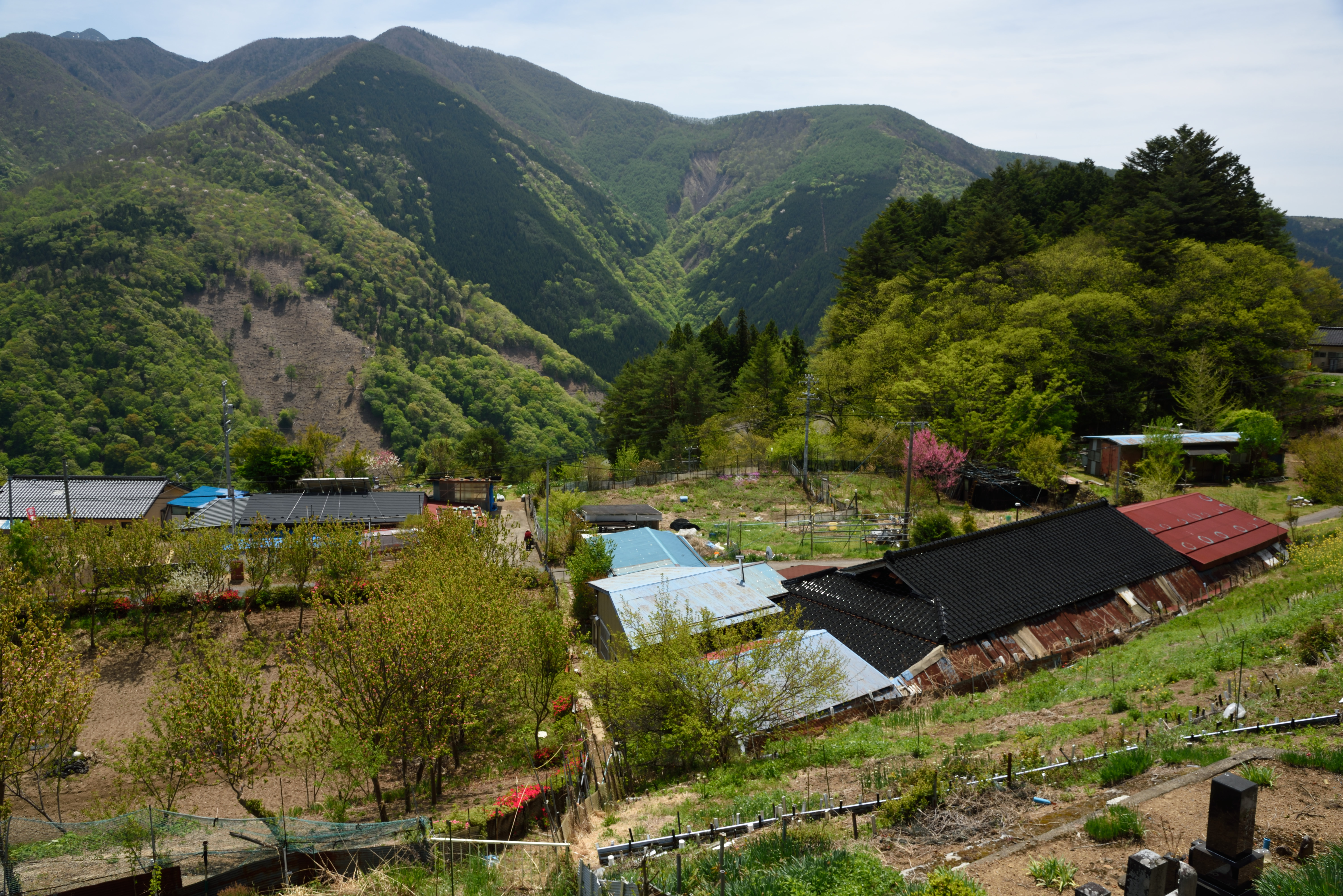下栗の里 駐車場周辺 2018/5/5(8年前) 写真, 甲信越, 長野 (2018年5月1日) 下栗の里へ車でくる場合,里を抜けたところにある駐車場に車を停めることになります. 標高が高いせいか里桜が咲いていました. 下栗の里の中を少し歩いてみました. 一番下まで降りると大変なので駐車場の付近だけです.たぶんビューポイントからは見えていない場所です. 駐車場の前にある食事処はんば亭でそばを食べました. 昼を食べた後もしばらく車でうだうだ過ごしていましたが,駐車場が満車になってきたので出発しました.