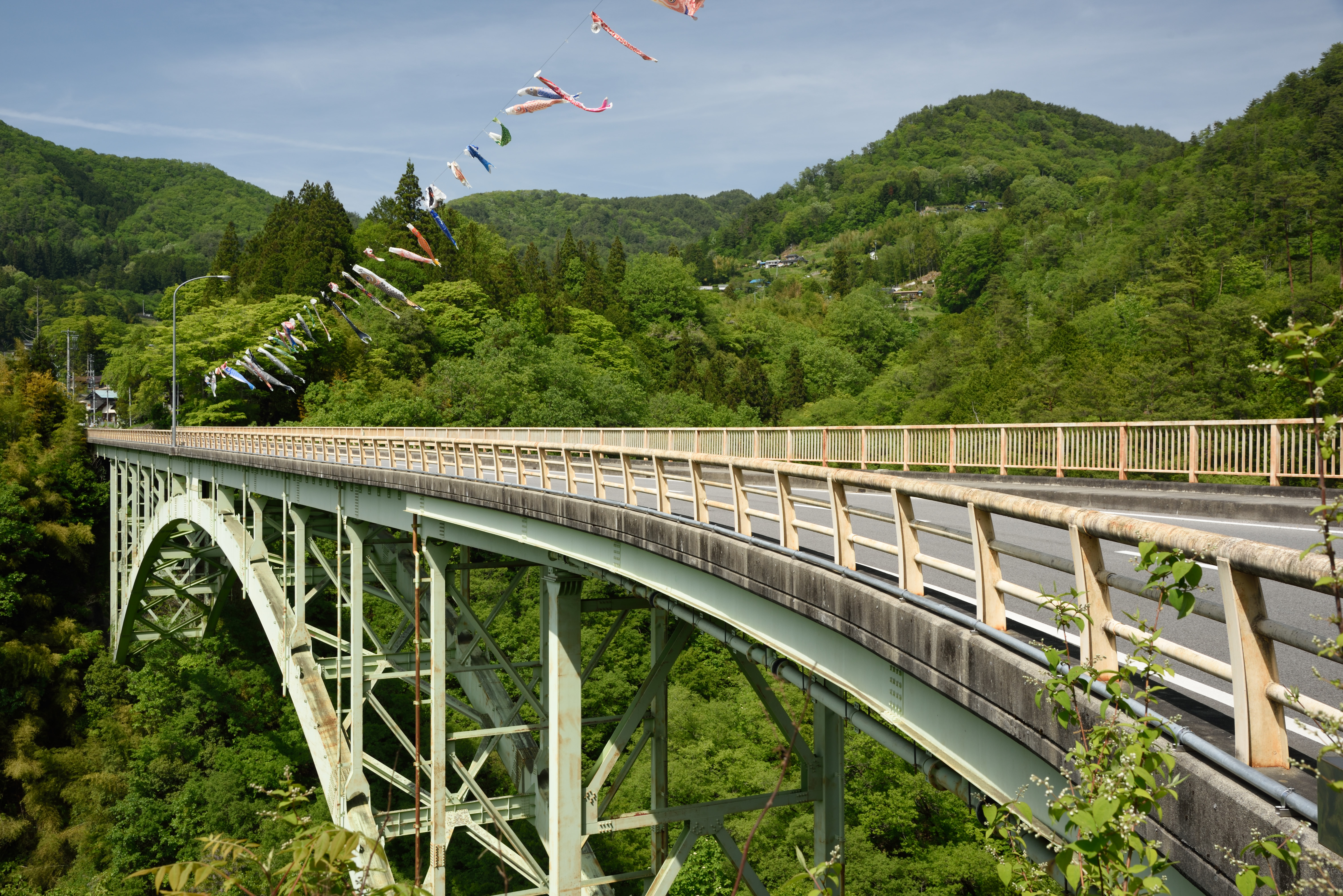 こんな山奥にこいのぼりが.調べてみると大沢橋だとか.