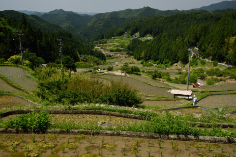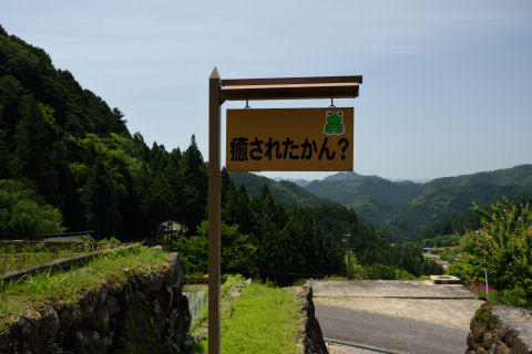 四谷の千枚田(2) 2018/5/28(8年前) 写真, 愛知, 東海 (2018年5月27日) 四谷の千枚田は下だけでなく中ほどにも駐車場があります. 今回はここで降りて,見下ろすように撮影. 上の方に展望台があるので,歩いて登っていきました. 一番高いところ,展望台のすぐ下からの光景. 展望台にも駐車場があったので,車でも来られるようでした. 帰りに見た看板.