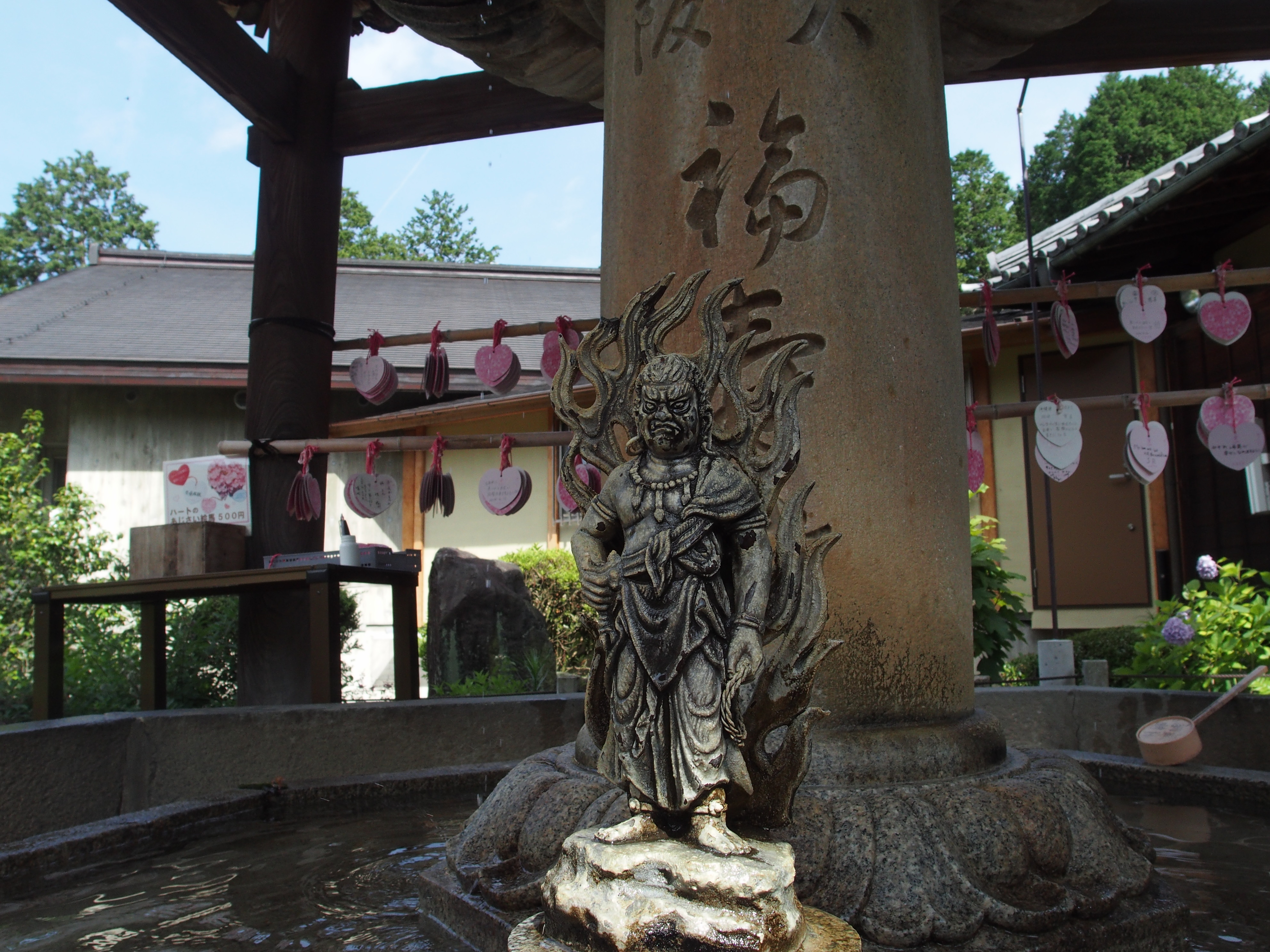 手水場.いかつい仁王像?がありますが,一方で後ろにハート型の絵馬がかけられています.