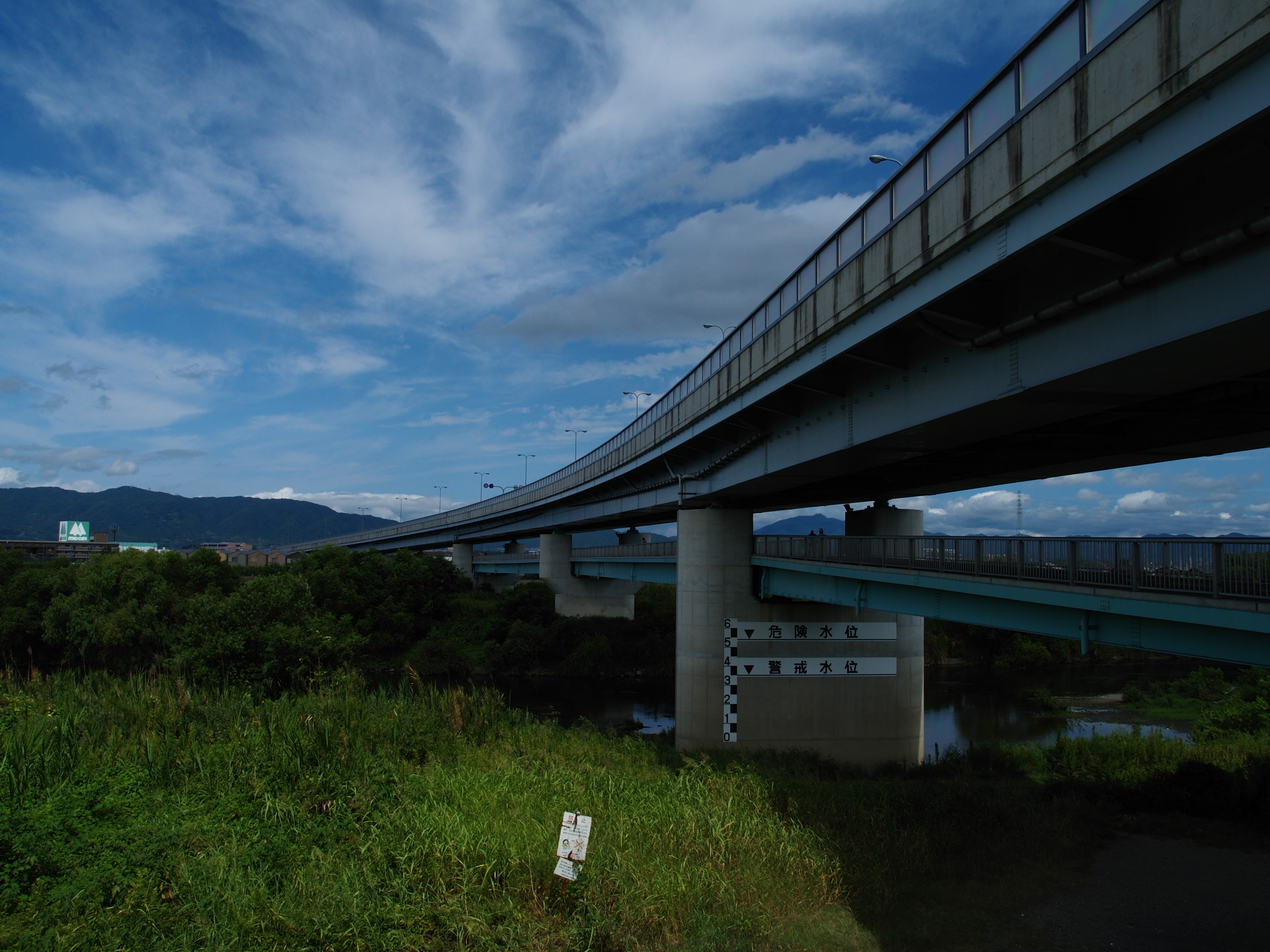 桂川サイクリングロードに沿って嵐山に行く予定でした.以下は陽が出ているときに撮影できた写真で,淀城跡から鳥羽浄水場までの区間のものです.