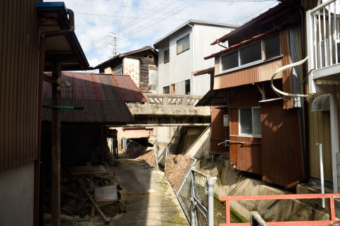 こんなに狭いところは普通なら私有地です.しかしこの道は市の所有なので,立派な公道です.