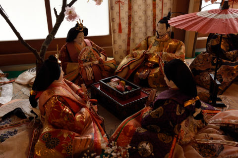 萬松閣の部屋や通路にたくさんのひな人形が飾られていました.