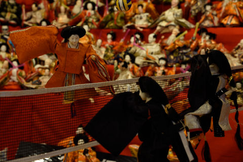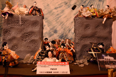 郡上八幡博覧館の福よせ雛 2019/3/5(7年前) 写真, 岐阜, 東海 (2019年3月3日) 郡上に来た一番の目的,ここの福よせ雛です. 壮観だったのが,バレーボールをしているひな人形. 平成のニュースを再現したひな人形たち. まずは元号制定. ベルリンの壁崩壊. ヨーロッパの出来事をひな人形で再現しているのが面白いです. カーリング女子となでしこジャパン. その他自由奔放なひな人形たち. 麻雀をするひな人形. 大ジョッキを抱えるひな人形. 餅をつくひな人形. 隣には餅を丸めたりしているひな人形もいます. 他にも様々なひな人形がいました.