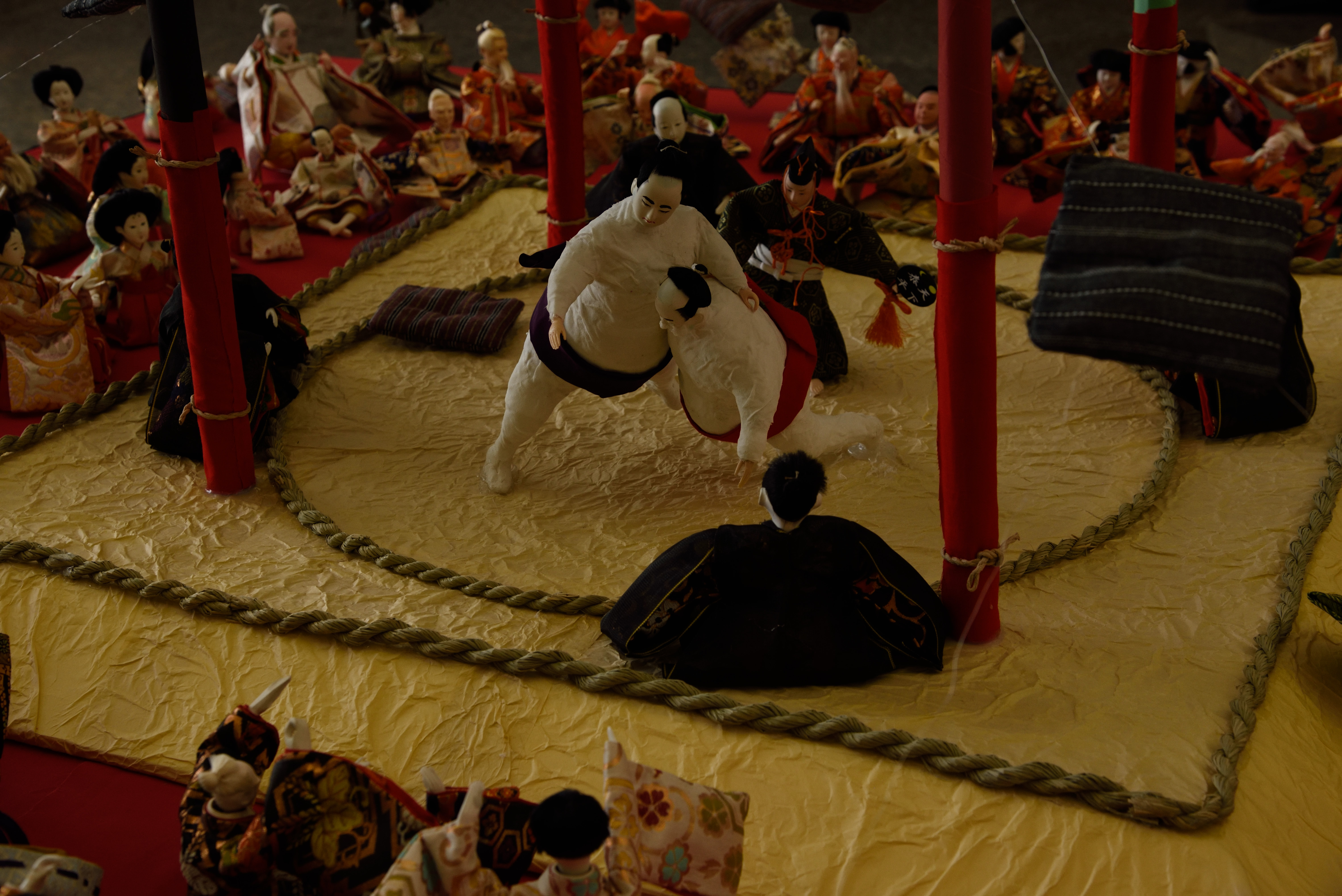 さすがに力士の体格はひな人形ではムリだったようですが,顔と手はひな人形のようです.