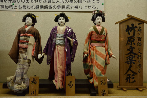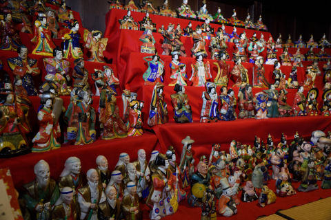 下呂温泉合掌村の土雛祭り(1/2) 2019/4/4(7年前) 写真, 岐阜, 東海 (2019年3月30日) 下呂温泉合掌村の土雛祭りに行きました. 入ってすぐのところにあるしらさぎ座には,さっそく土雛の巨大な段飾りが. こうも土雛ばかり見ていると,だんだん何の土人形かわかってきたような気がします. 合掌の里の真ん中にある,旧大戸家住宅. 囲炉裏の向こうの部屋に土雛. 昔の箪笥の上にひな飾り. 休憩所にも土雛が飾られています. 竹原文楽記念館. 竹原文楽とは一人でおよそ100体の人形を操る人形歌舞伎だそうで,それに関する人形の展示がありました.