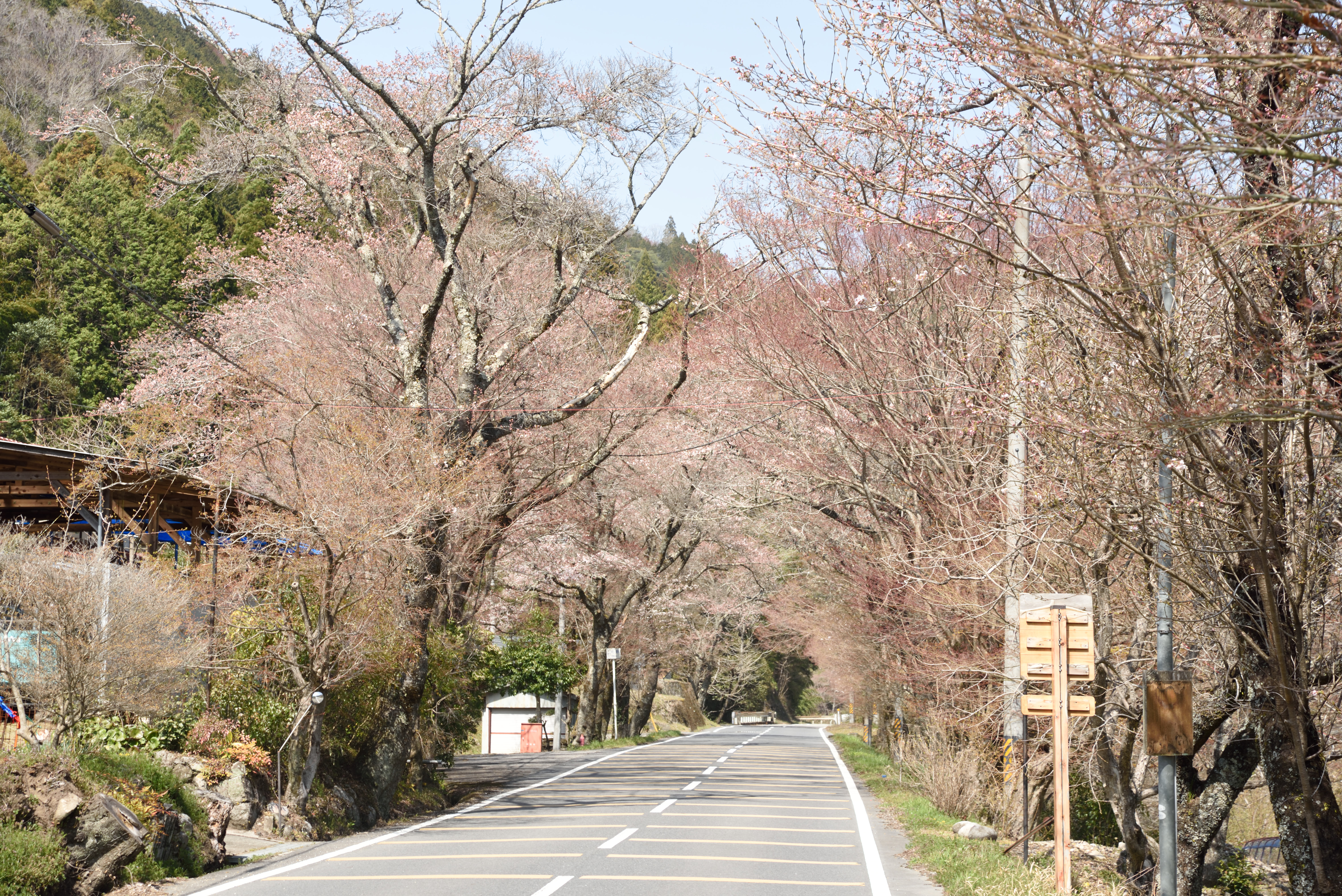 奥矢作湖沿いの道は奥矢作さくら街道という名前のようで,桜並木はありましたがまだ咲き始めでした.