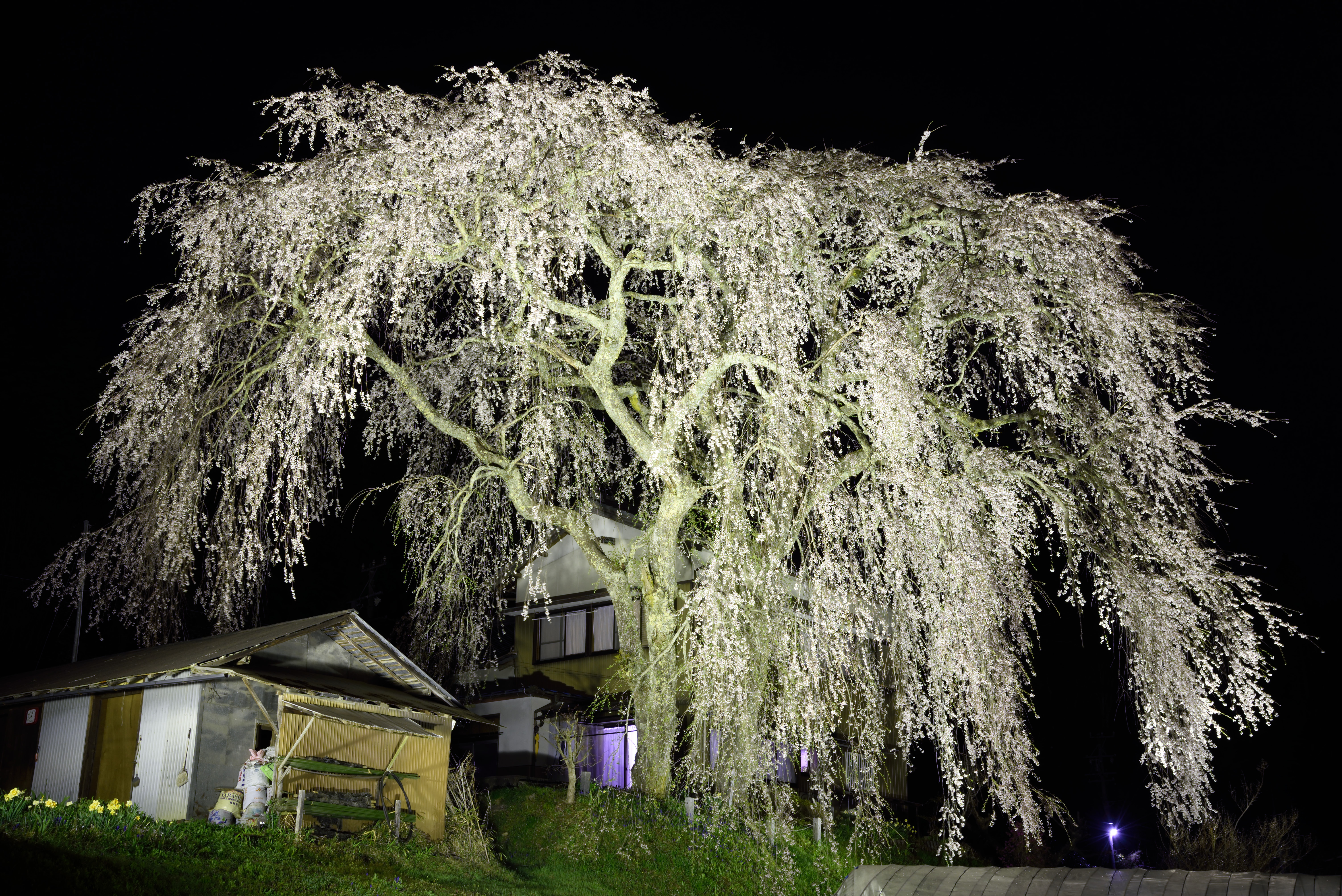 今回撮影したのは釜屋の枝垂れ桜のライトアップ.樹齢650年と推定される桜です.