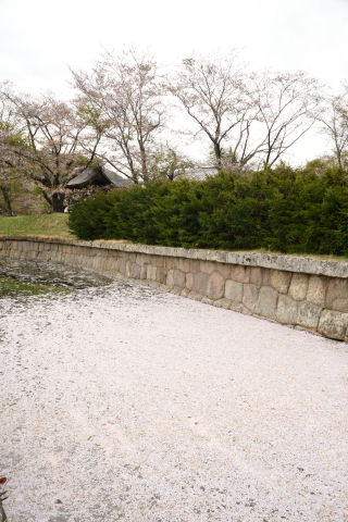 堀には散った桜の花びらがたくさん.こういうのを花筏というそうですね.