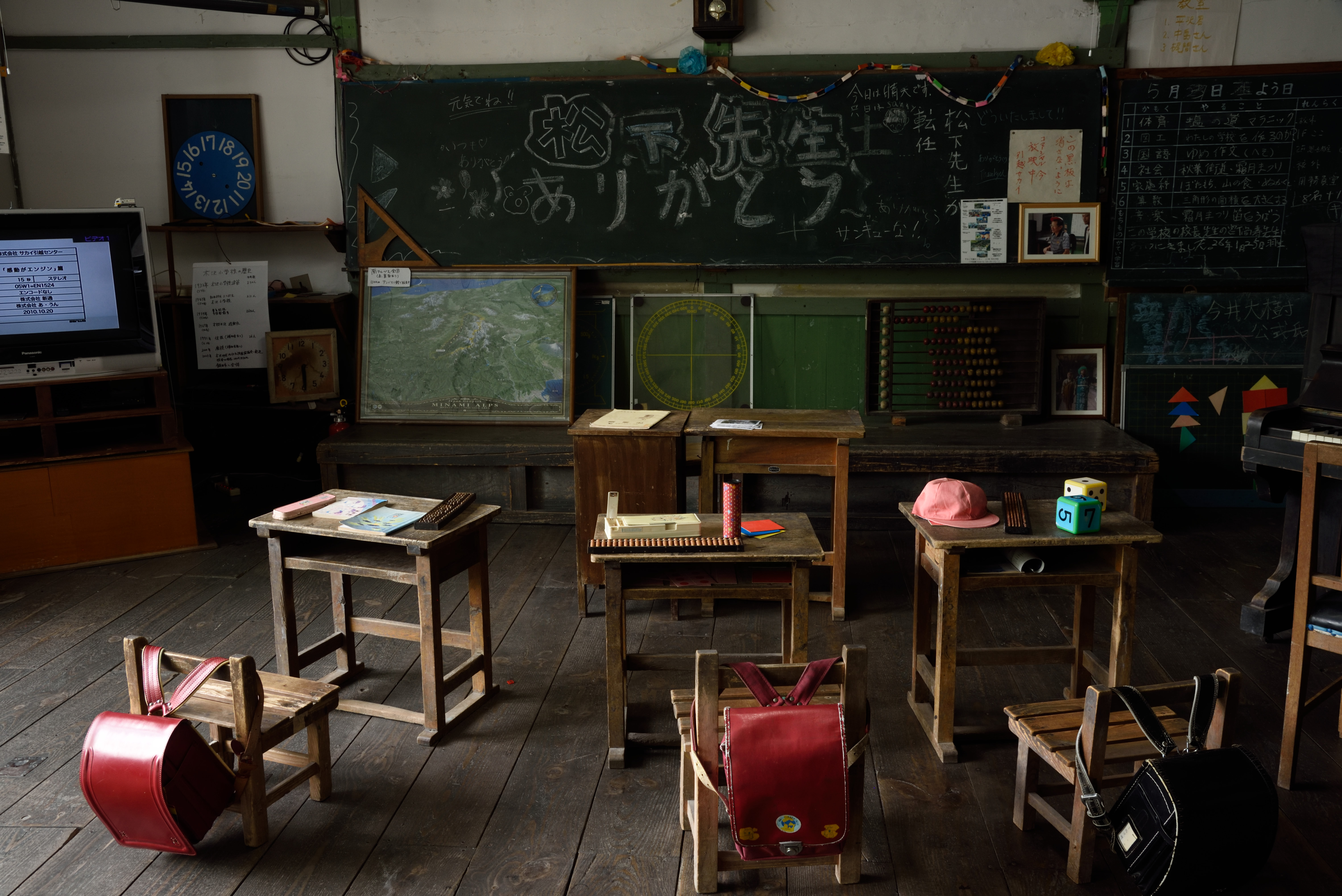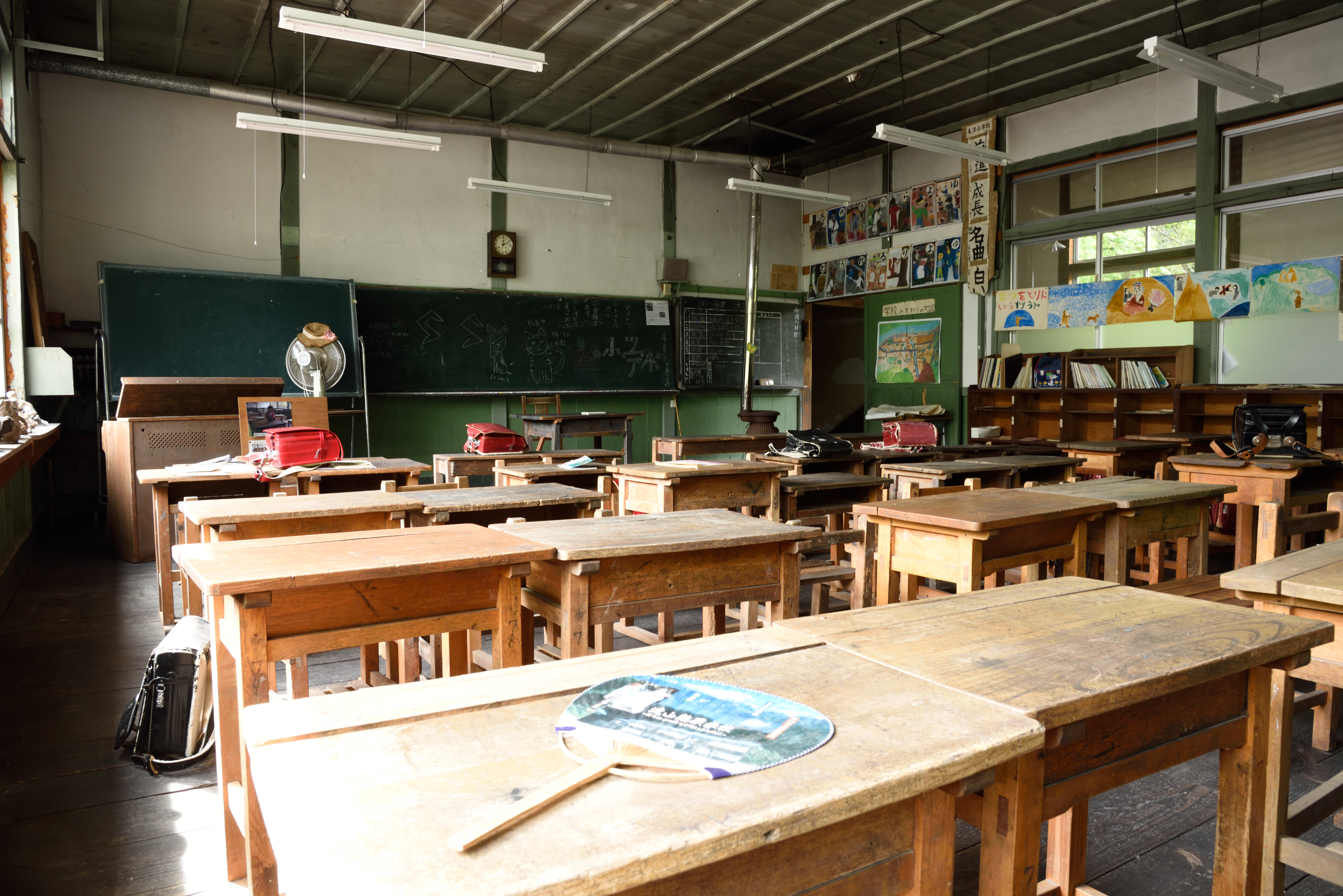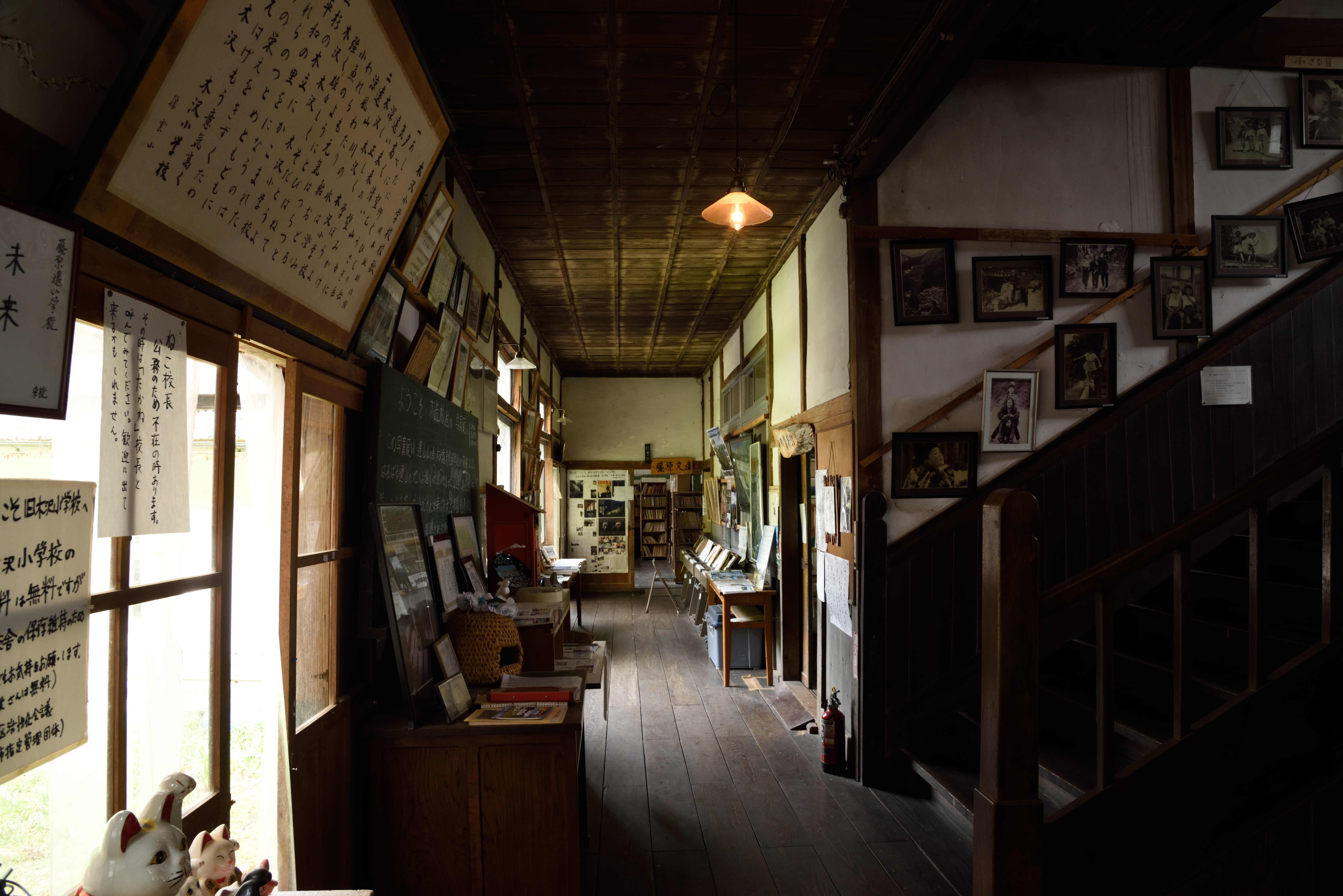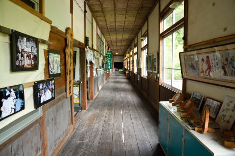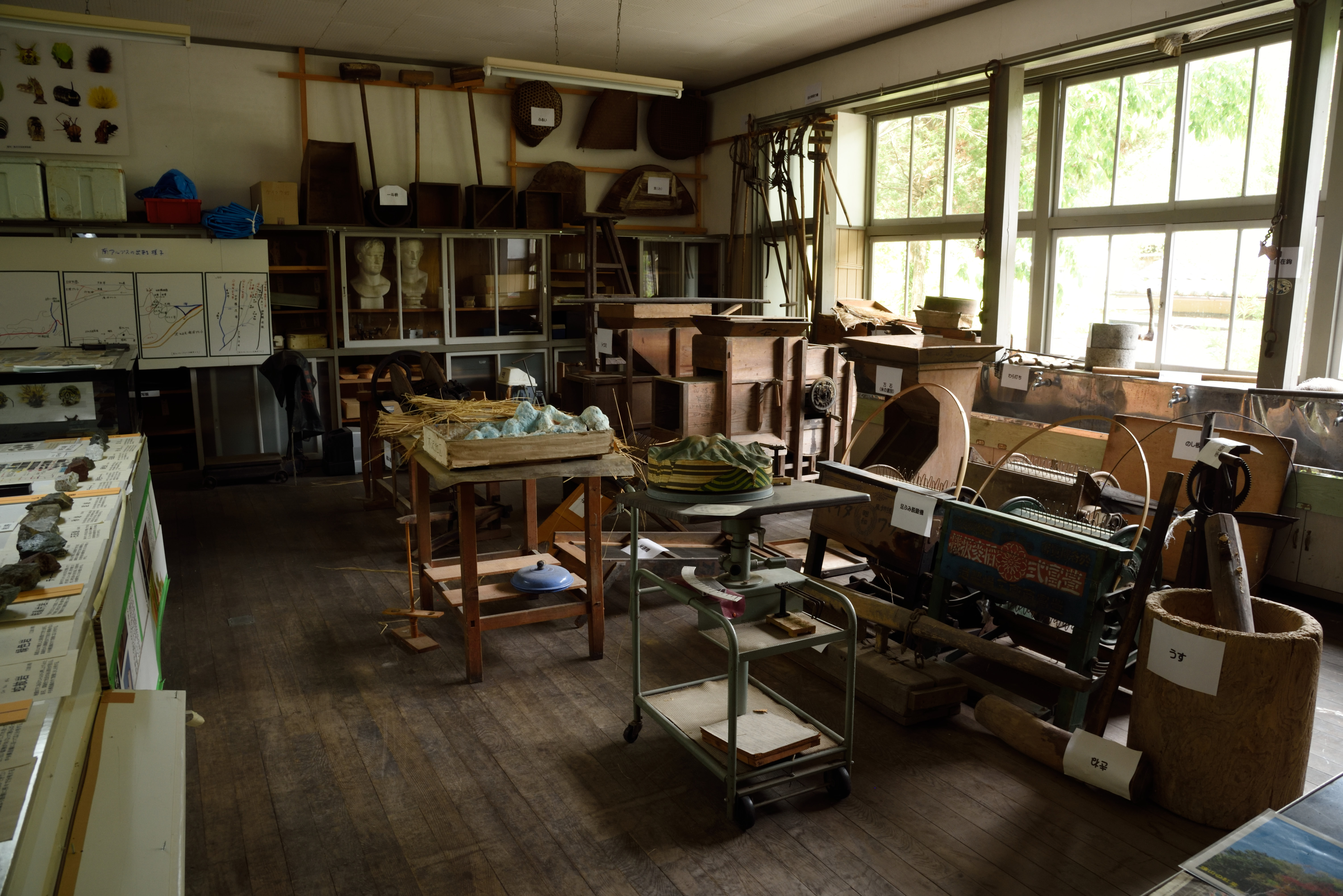 旧木沢小学校 2019/5/18(7年前) 写真, 甲信越, 長野 よこね田んぼの近く,と言っても山があるので若干遠回りが必要ですが,近くの遠山郷に旧木沢小学校という解放されている廃校へ行ってみました. こちらが着いたときの写真. 何かのイベントをしていたようで,バイクがずらっと並んでいました. 校内を見学しました. 当時の様子を残している教室. 展示をしている教室.