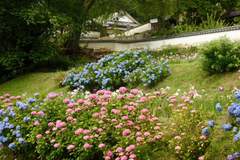 松平郷のあじさい 2019/6/16(7年前) 写真, 愛知, 日記, 東海 あじさいの季節なのでどこかいい所がないか調べたところ,松平郷で咲いているようなので行ってみました. 松平郷の奥,高月院の辺りにあじさいが咲いています. 池の周りのあじさい. 田んぼの中のあじさい. 日本の壁とあじさい. 花ショウブも咲いていました.