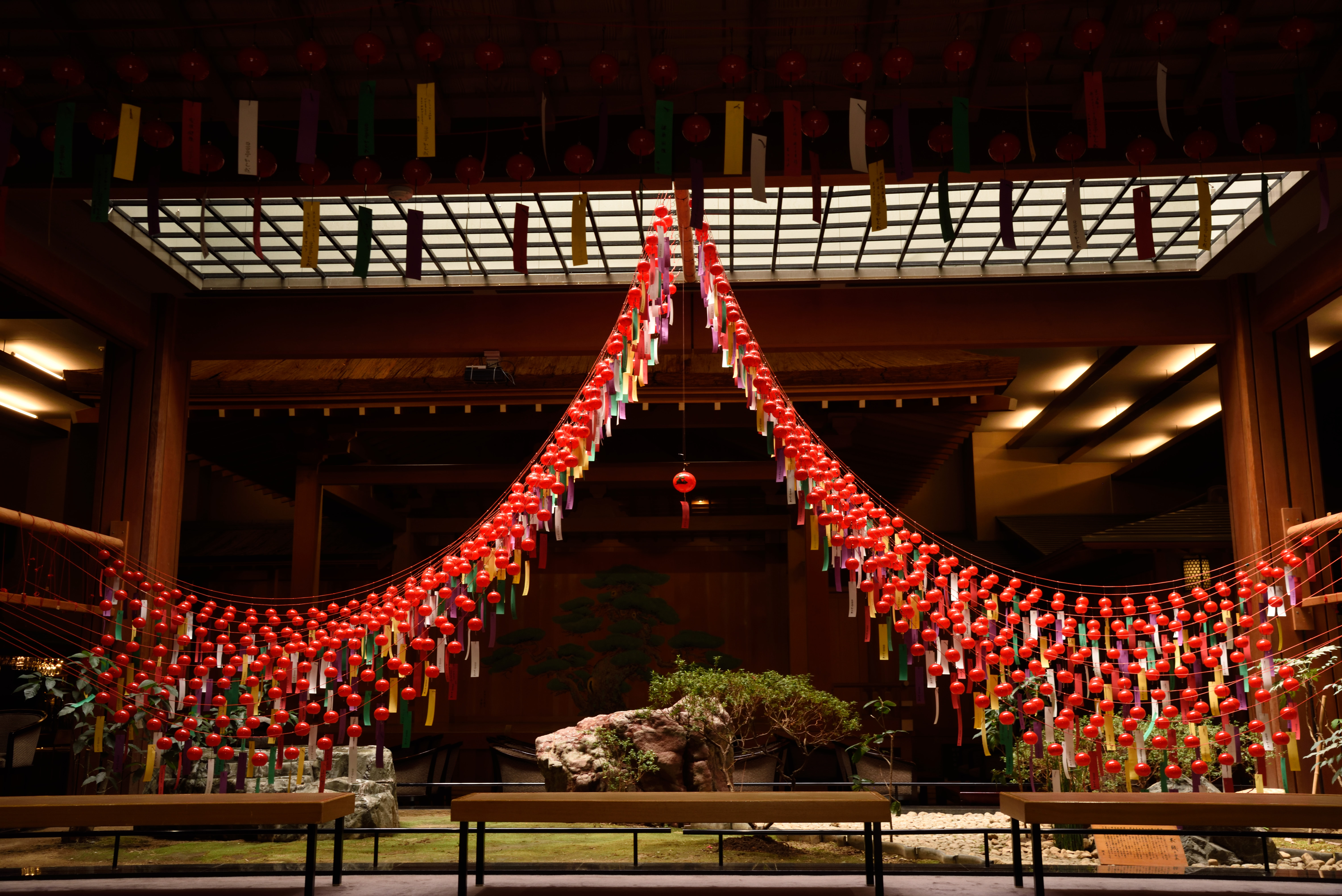 気づけば今年も半分が過ぎ,七夕の季節です. 昼神温泉の石苔亭では七夕風鈴が飾られました.