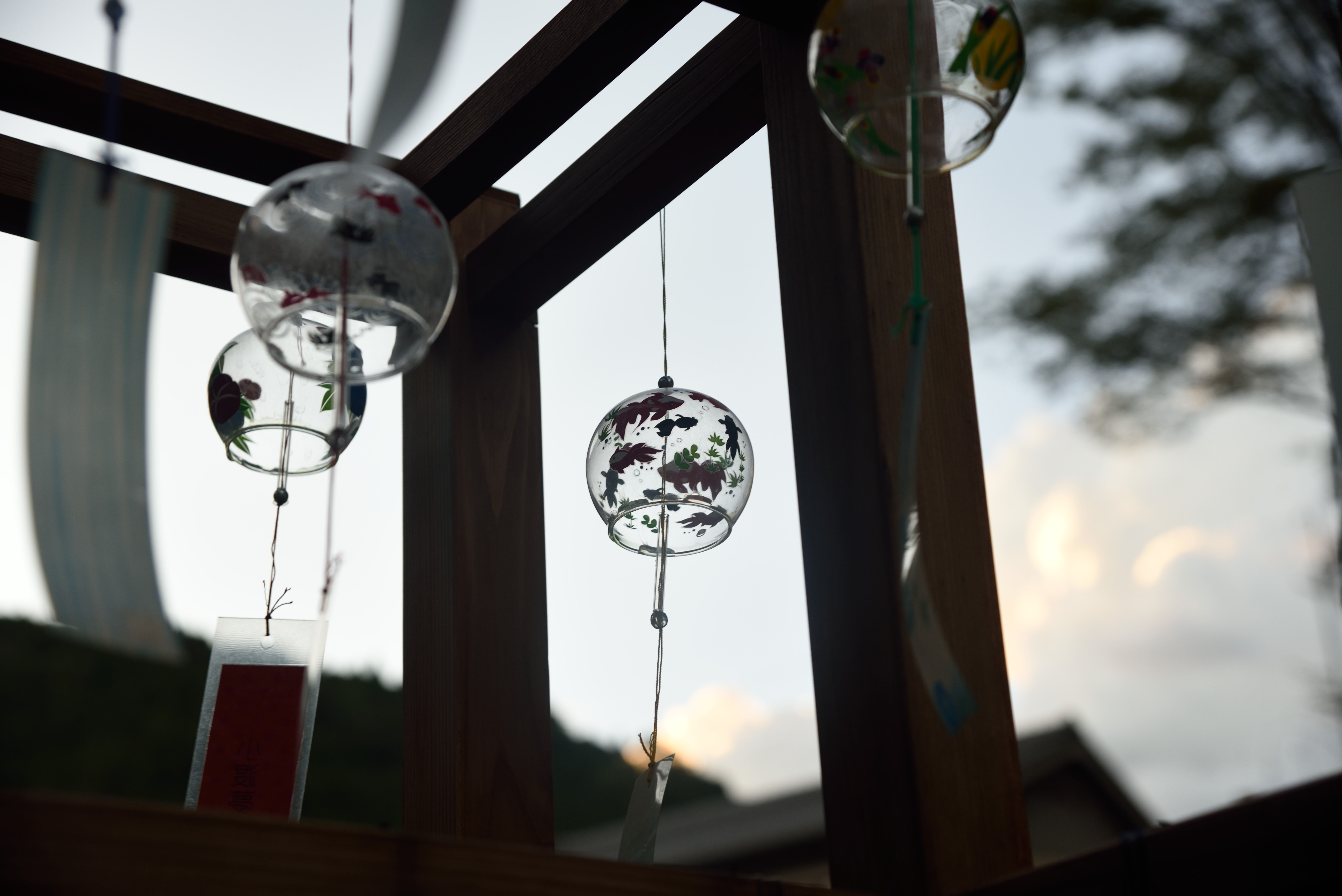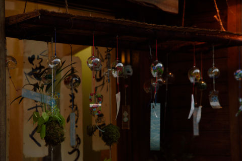 夕暮れの小渡夢かけ風鈴 2019/8/13(7年前) 写真, 愛知, 東海 下伊那からの帰りに,小渡によって夢かけ風鈴を見に行きました. 着いたのは夕暮れ時で,店先に灯りが点きはじめていました. こちらは広場の風鈴. 日が落ちているので薄暗いです. これはこれでいいですが,やっぱり1度は青空の下で見たいものです.